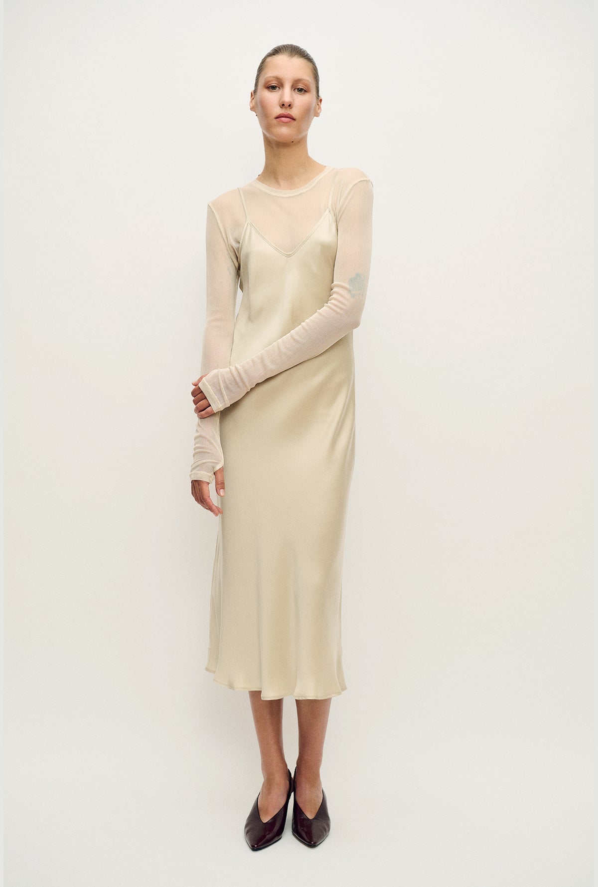Mesh Long Sleeve Top - Hazelnut