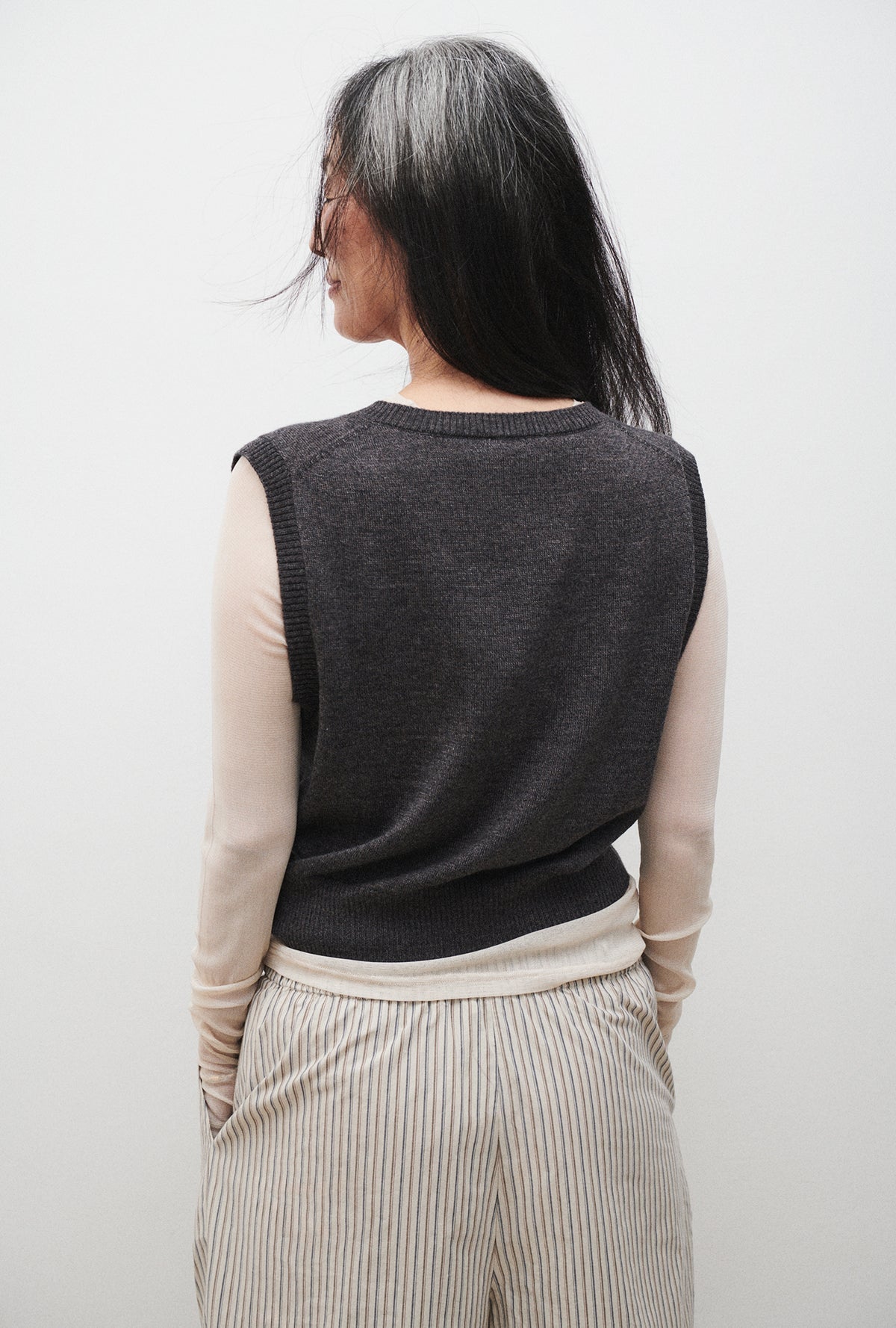 V Neck Sweater Vest - Grey Melange
