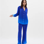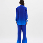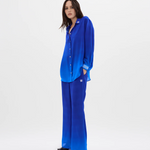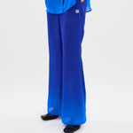 Set on 16mm silk for visual elegance and tactile luxury, the classic bias pants follow the classic Muma Logo stripe for structure to the floor, offset by the luxurious drape in a soft Cuban Nights gradient. With a wide-leg bias cut that allows the fabric to flow and move gracefully with the body, enhancing the fluidity and comfort of the design, the waistband is designed for versatility and elasticated at the back. The pants offer comfort without sacrificing style. These pants are semi-sheer, adding to the casual aesthetic of the look, perfect for warm climates or layering in transitional seasons.