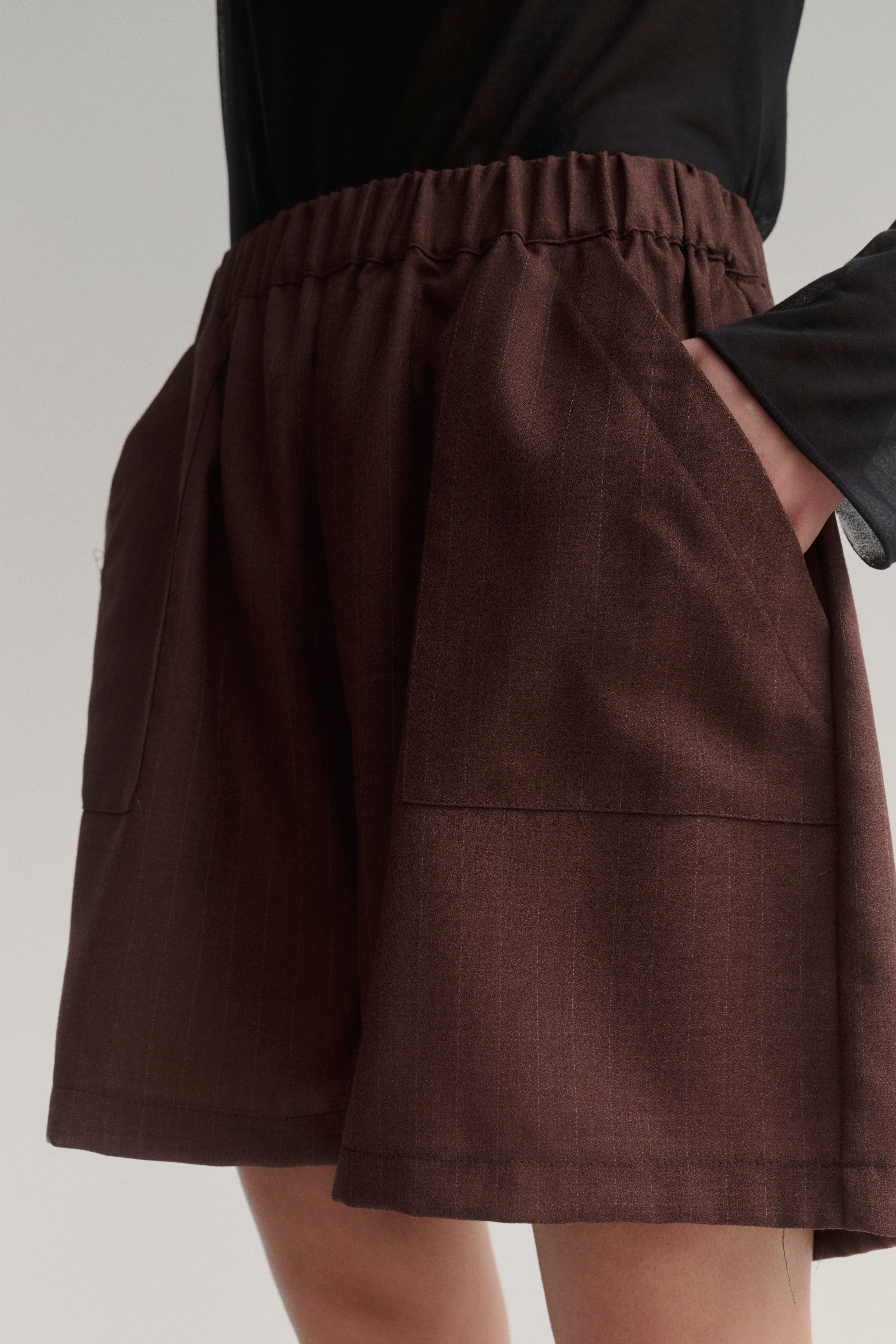 Pull-On Shorts in Brown Pinstripe by MATIN.