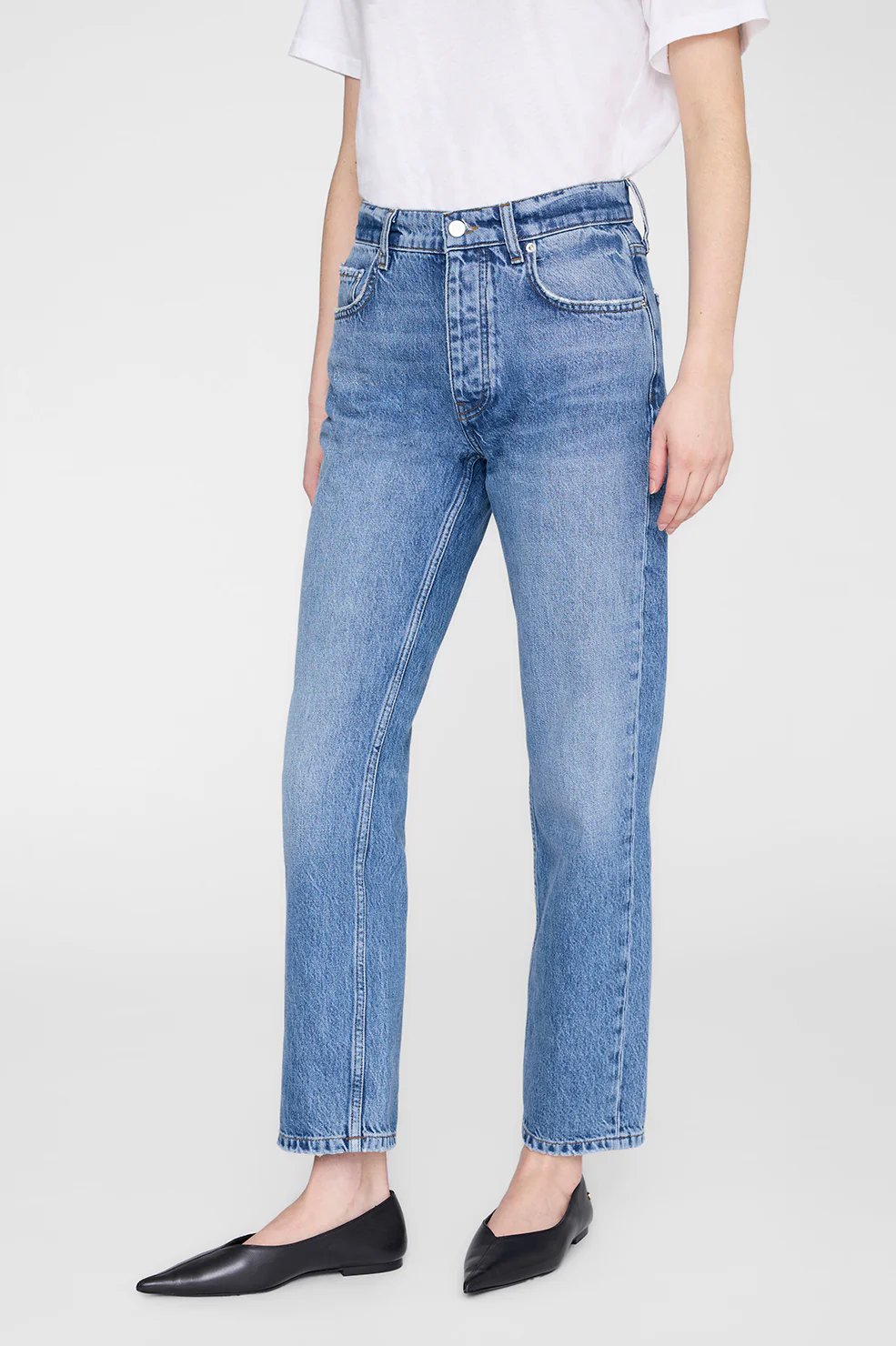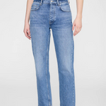 A timeless denim staple reimagined with subtle edge. Crafted from midweight, rigid regenerative cotton denim with an authentic, structured feel that softens over time, the Kate Jean is finished in a tidal blue with vintage-inspired grinding and light abrasion. This straight-leg silhouette offers a perfectly worn-in look while maintaining clean, modern lines. Designed to sit slightly above the hip with an ankle-length inseam, this essential is an effortless everyday style that pairs seamlessly with everything from crisp shirting to relaxed knits.