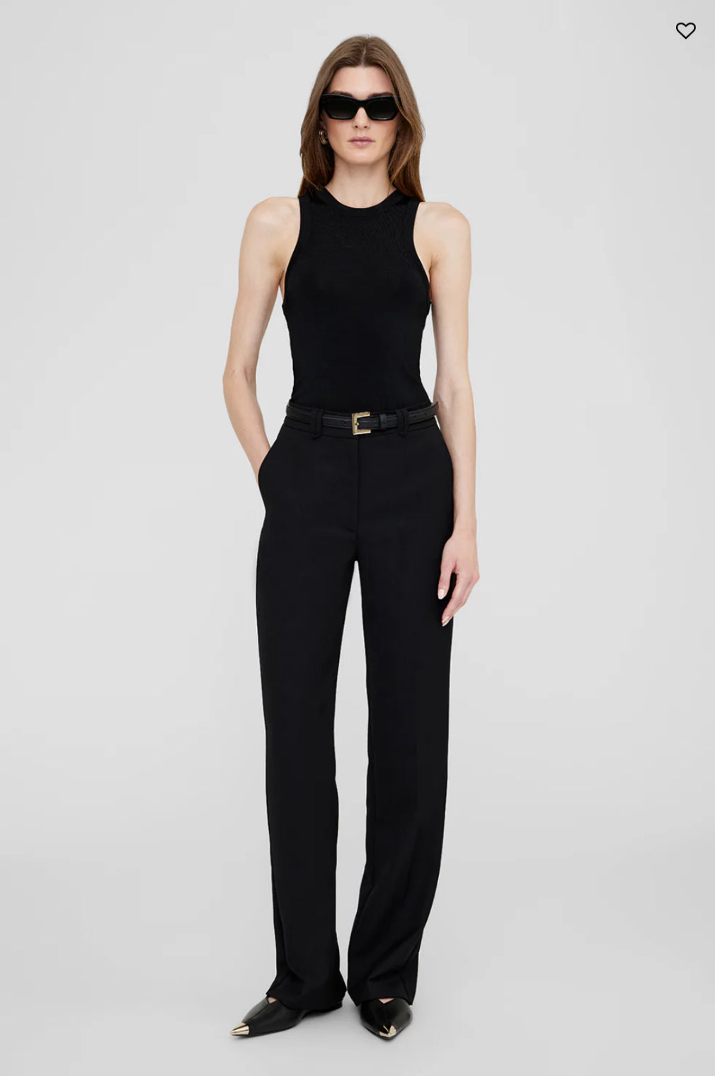 Crafted from black 100% cow leather, the Nicola Belt has a slight sheen and features a custom square-shaped buckle in 14k gold-plated zinc with subtle ANINE BING branding. This everyday style is also slightly padded.