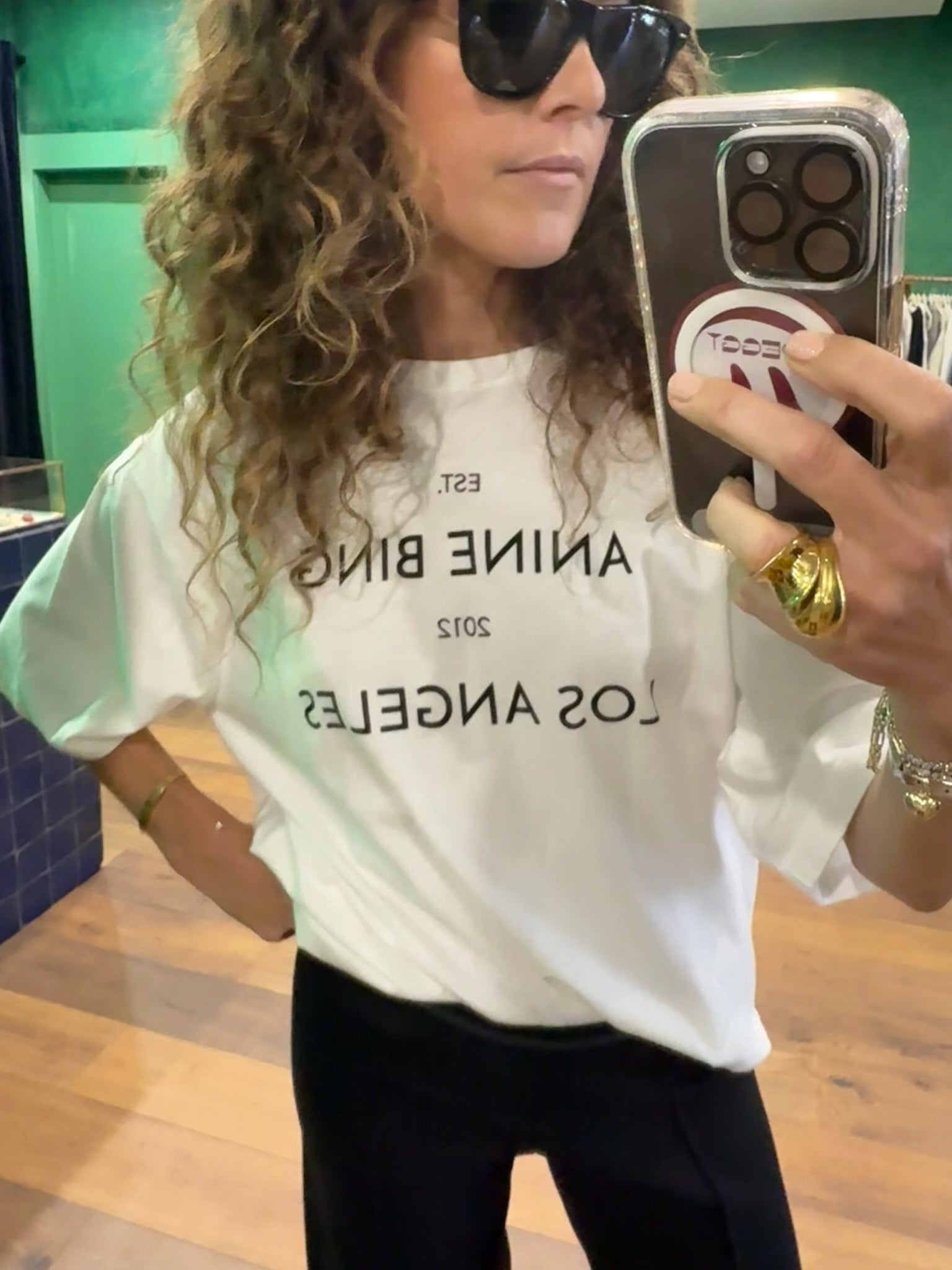 The Rudy Tee by Anine Bing is crafted in soft cotton with logo text on the front. The Rudy t-shirt is designed in an oversize fit, with short wide sleeves and a round neck.