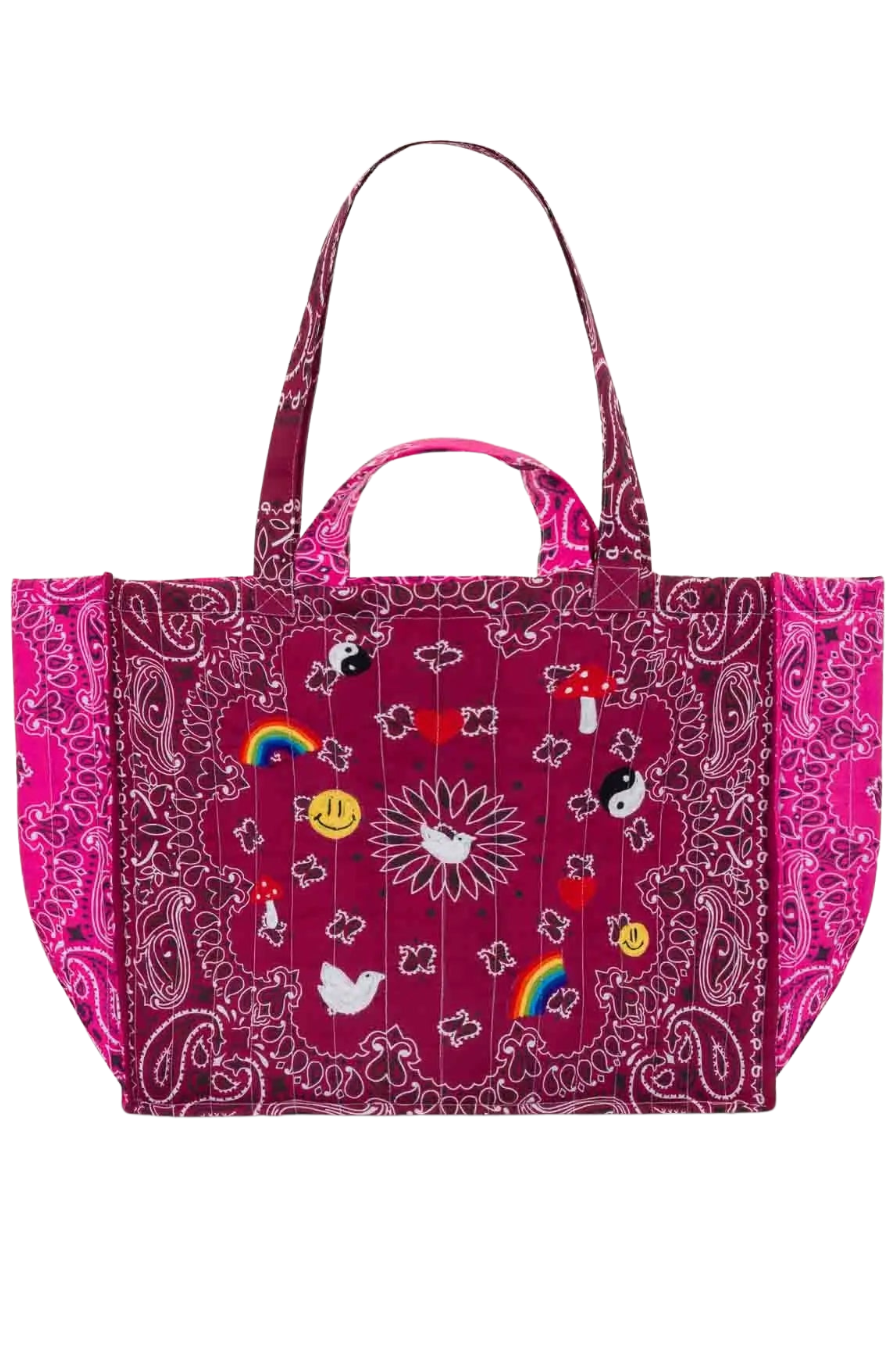 Medium Embroidered Tote Bag - Multi Emoiji/Bordeaux/Fuchsia