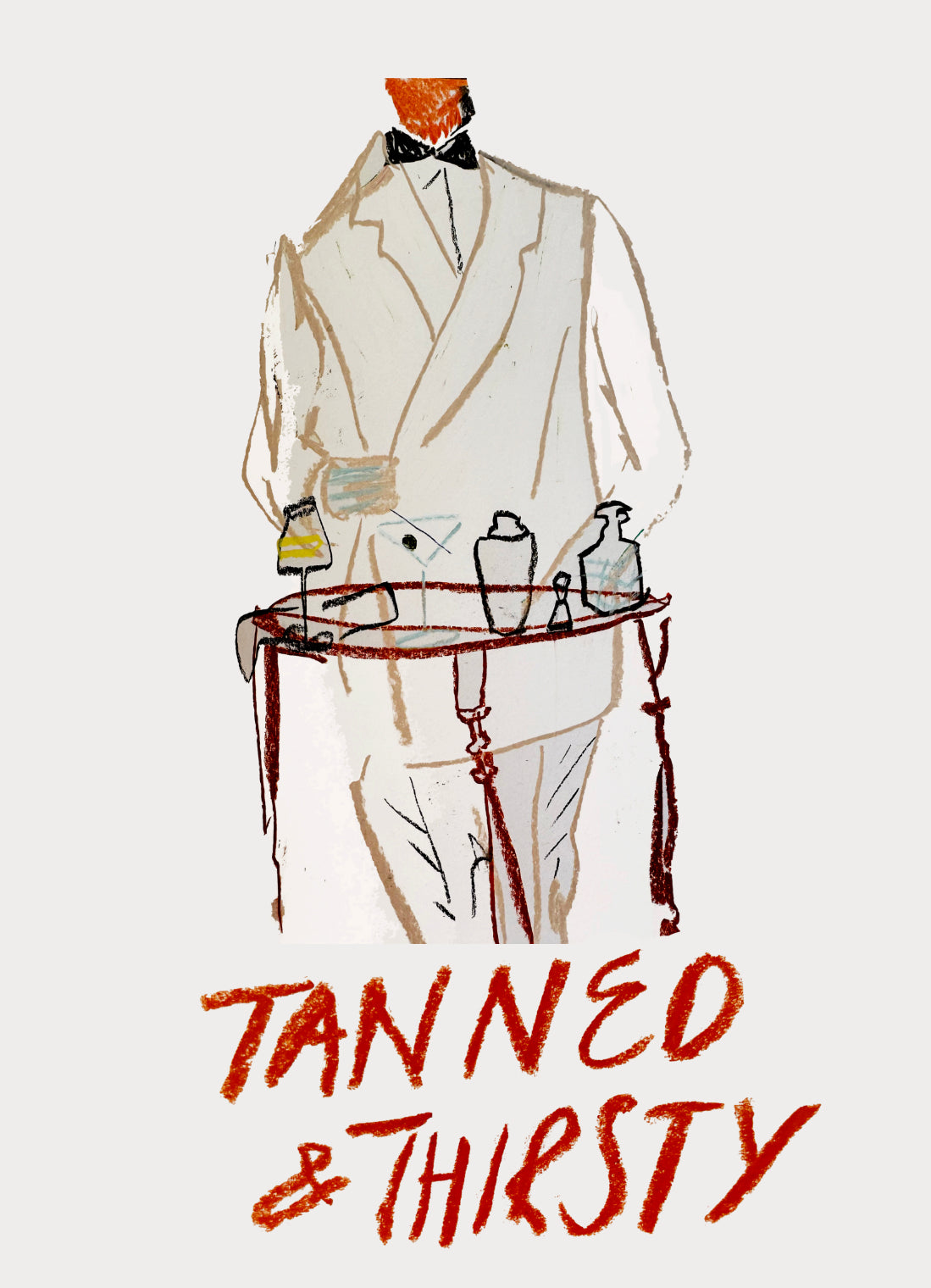 Since embarking on the creation of her visual wine diary Champagne Republic in 2014 her illustrations have appeared in Harper's Bazaar, The Australian Financial Review, Gourmet Traveller Wine and The Robb Report. Tanned & Thirsty depicts scenes & object drawn from the bars and beach clubs of Europe's most exclusive summer playing fields. Works on paper and small sculptures developed for Peggy Concept Store are designed to evoke the cyclops-green waters of Hydra, the literary haunts of the South of France and the glistening dining rooms of the Italian Riviera.