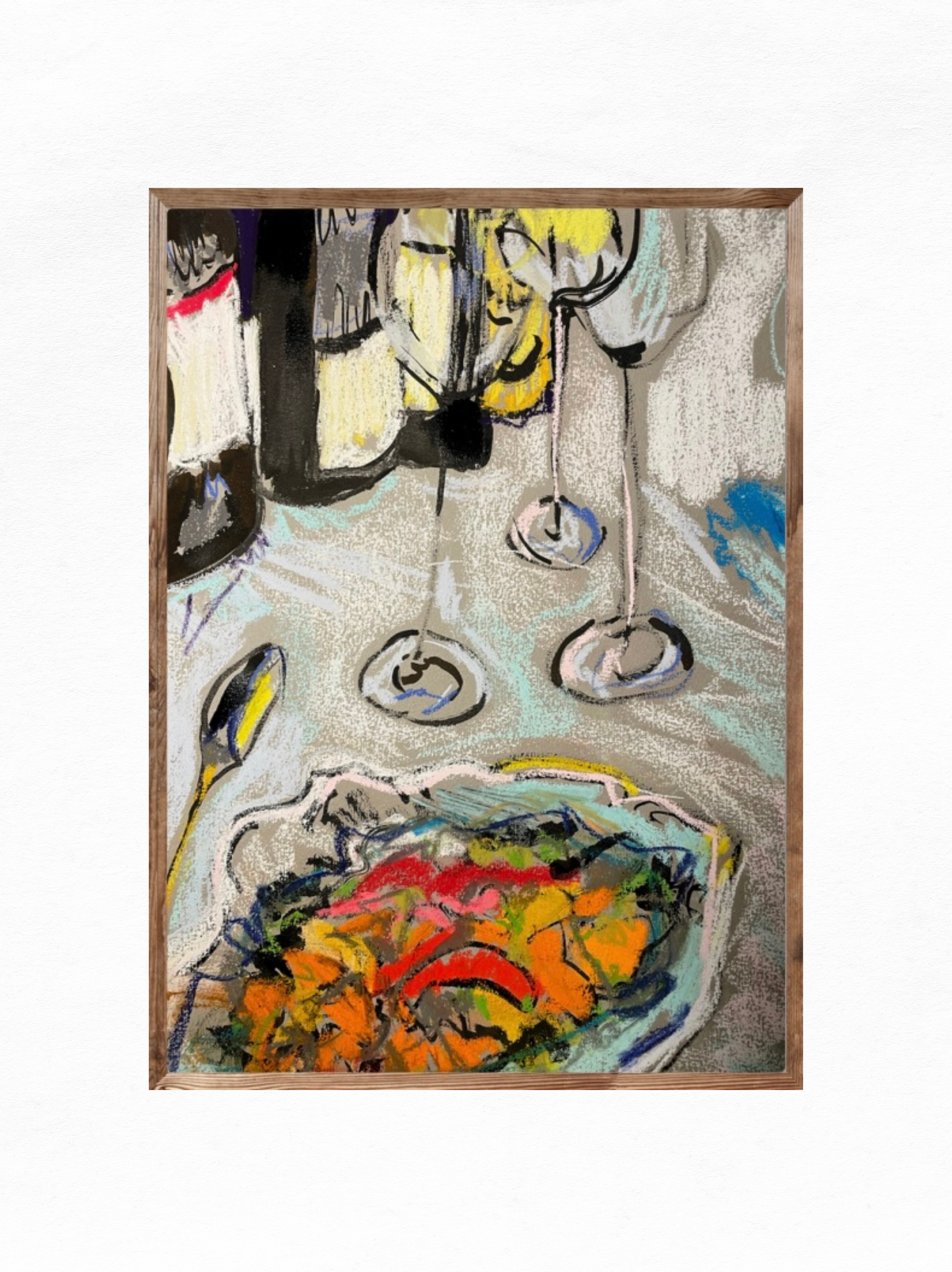 Framed original by Illustrator Belinda Aucott-Christie is a self-confessed Euro-file and storyteller. Made with pastel and ink on paper framed behind non-reflective glass 297 x 420mm