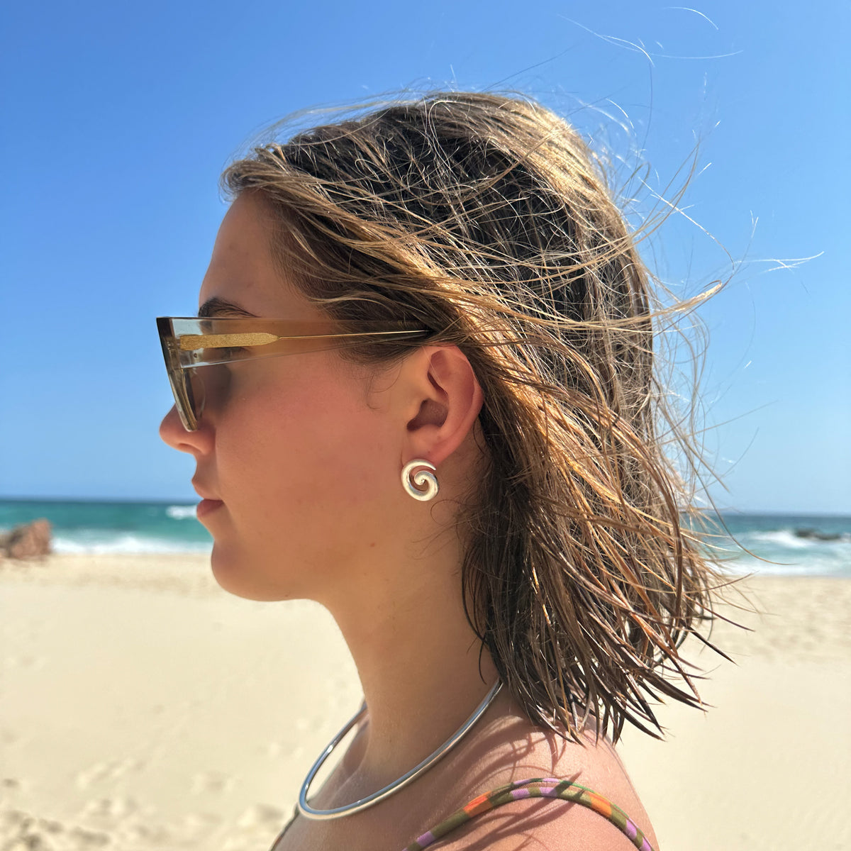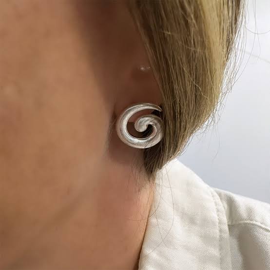 The popular swirl earrings are now available in a mini size. These spiral-shaped, lightweight earrings are great for daily wear and versatile for any occasion. Measures 1.9cm and made with real silver plated brass. This material is “worn silver” meaning it is not shiny and features a simple post-style design with butterfly closure.