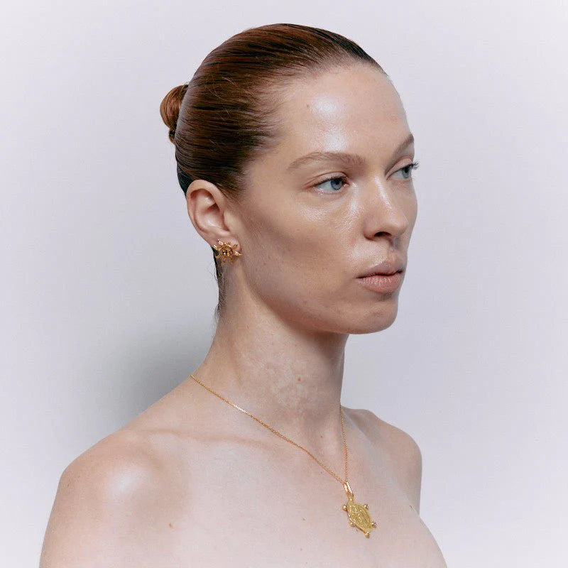 These Mini Apollo Sun Earrings are expertly handcrafted and individually cast, ensuring each pair is a unique work of art. Plated with 18K gold, they offer a radiant, lasting shine while being free from nickel and lead, making them safe and comfortable for sensitive skin. Their delicate sun-inspired design adds a subtle touch of elegance to any outfit, perfect for everyday wear or special occasions. Lightweight and durable, these earrings combine beauty and comfort effortlessly, making them a timeless addition to your jewelry collection.
