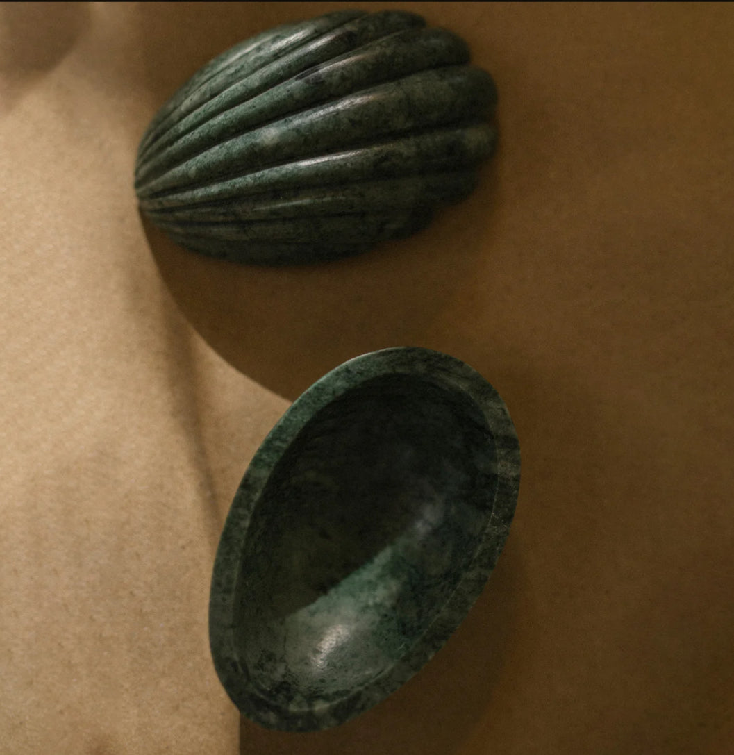 Hand-sculpted from a single piece of luxurious marble, our Madeleine Box is characterised by its fluted shell-inspired lid, which sits delicately atop a smooth elliptic base.