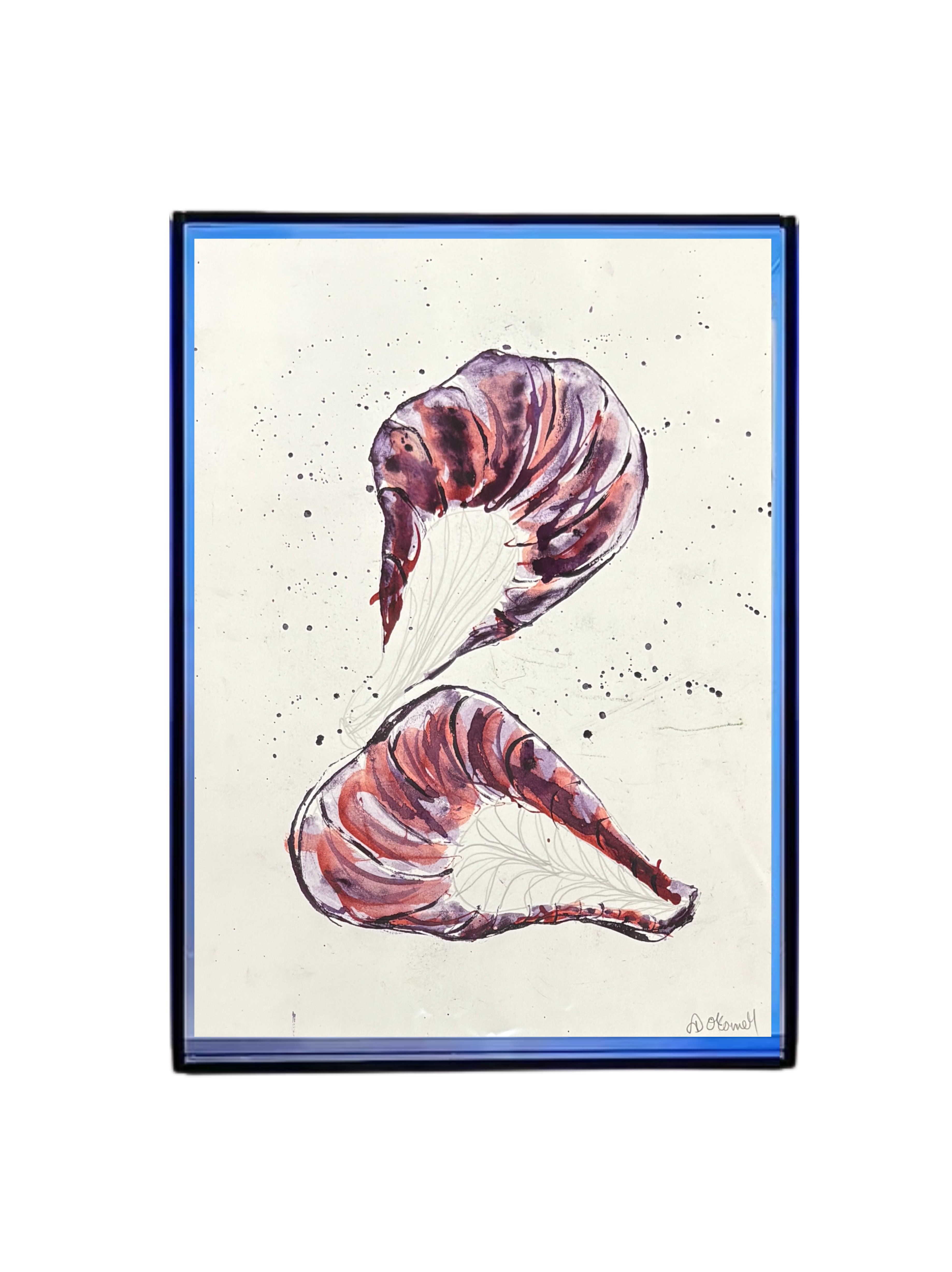 This is an original artwork on paper, presented with a 4.5cm space between the piece and the contemporary perspex frame for a modern, gallery-style finish.