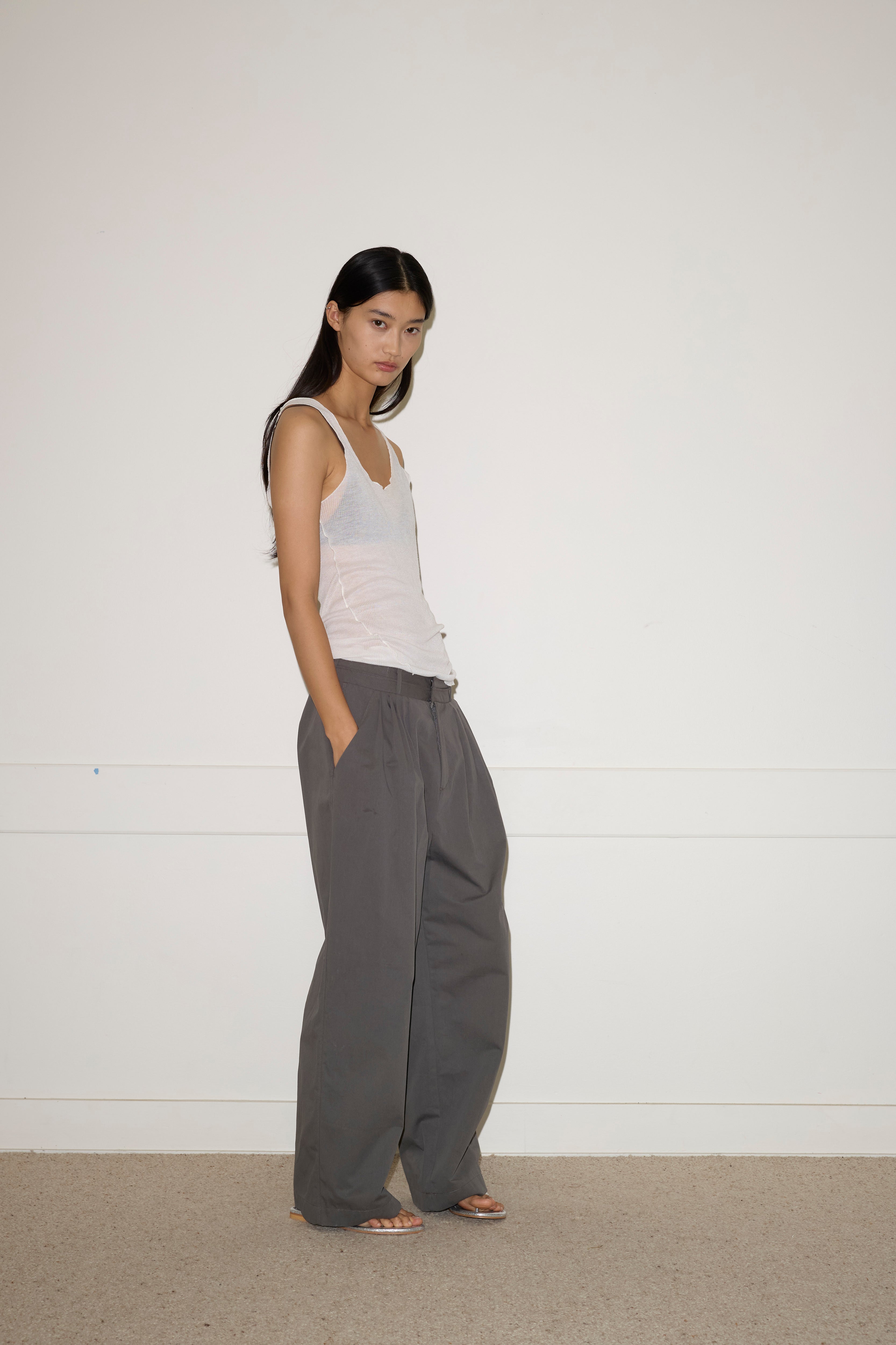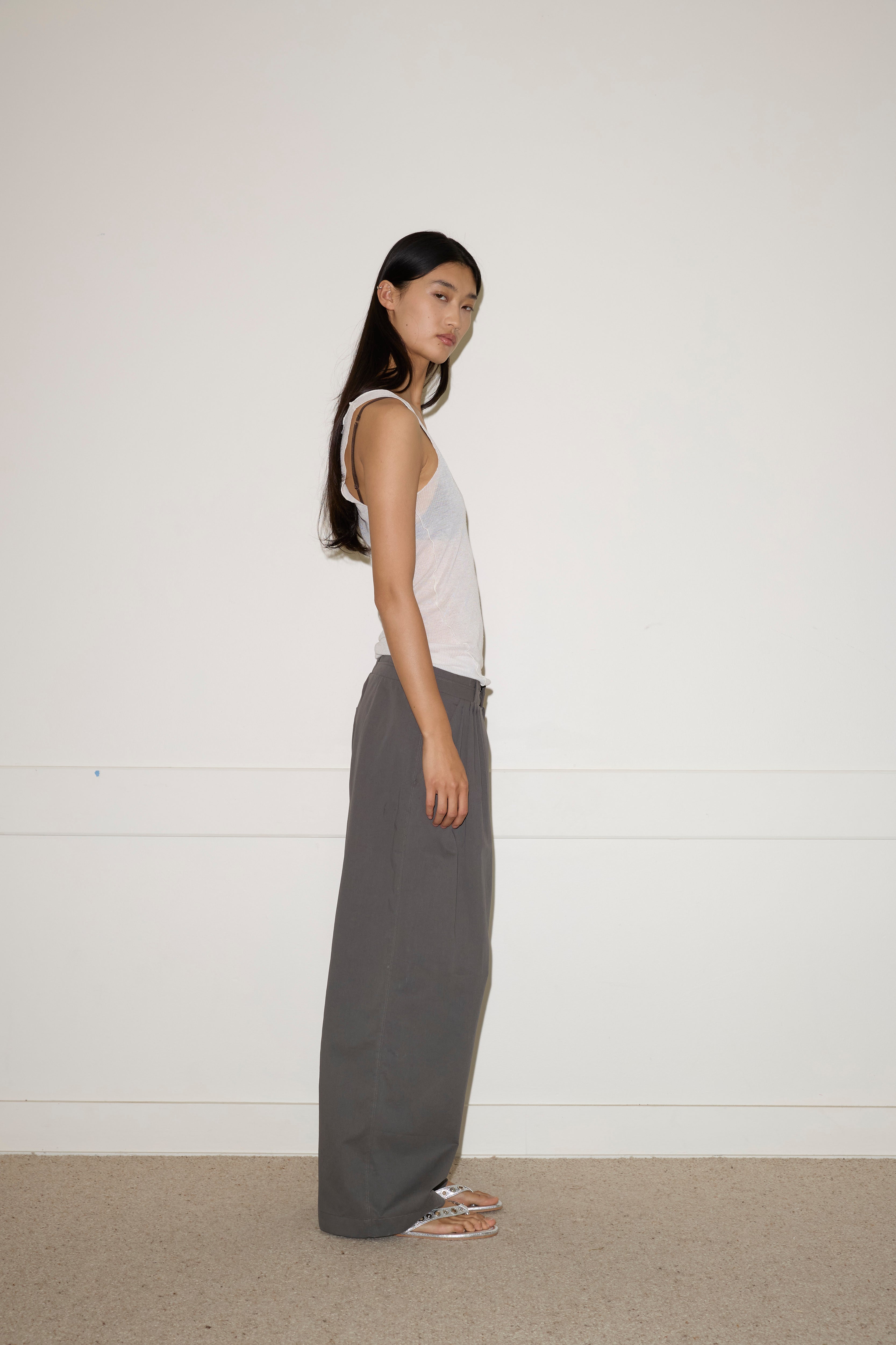 The Two Layer Pant in Charcoal by Deiji Studios.