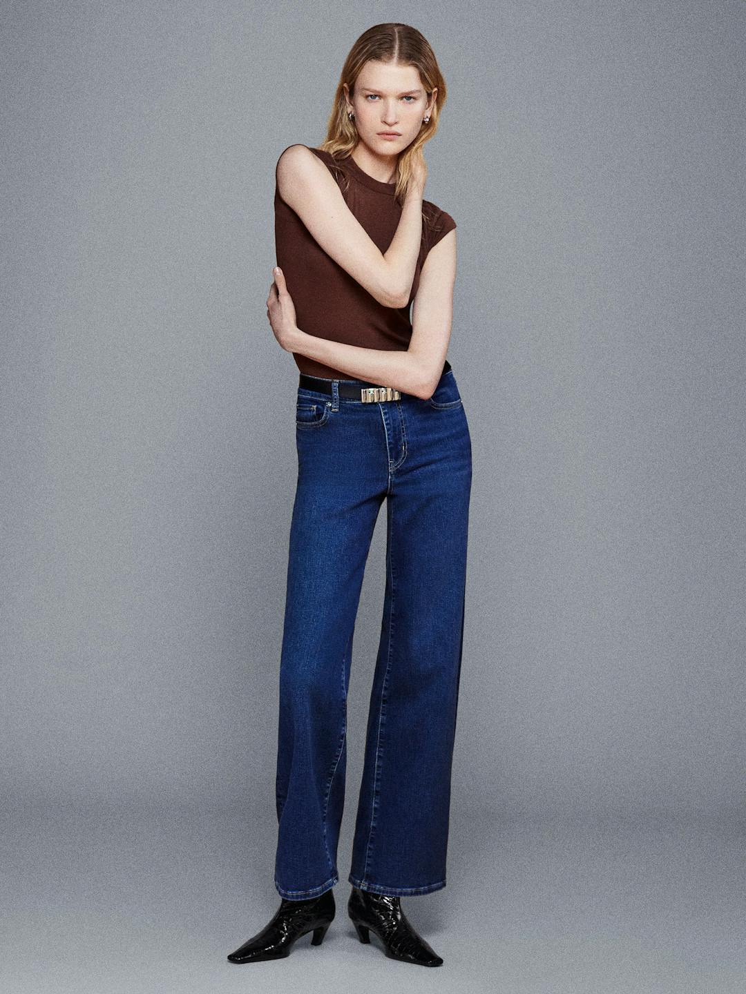 This product features a tall, full A-line frame made of a cotton blend with elastic stretch for added versatility and comfort. A FRAME introduction to the best-selling palazzo silhouette, this pair is designed with a flattering high rise, fitted hip, and subtle wide-leg flare that hits at the floor. Crafted from a sustainable, ultra-stretch cotton blend for soft and comfortable wear.