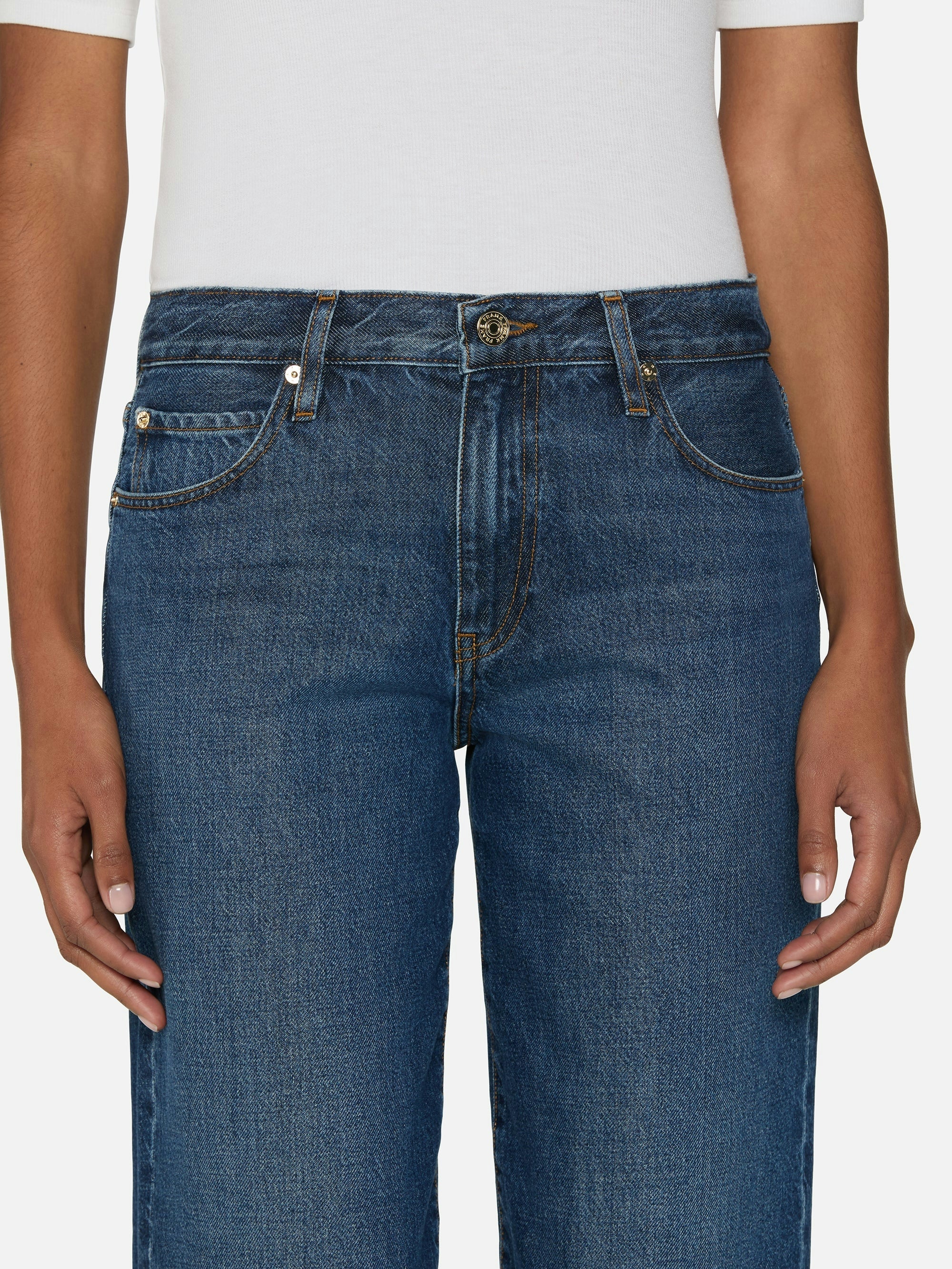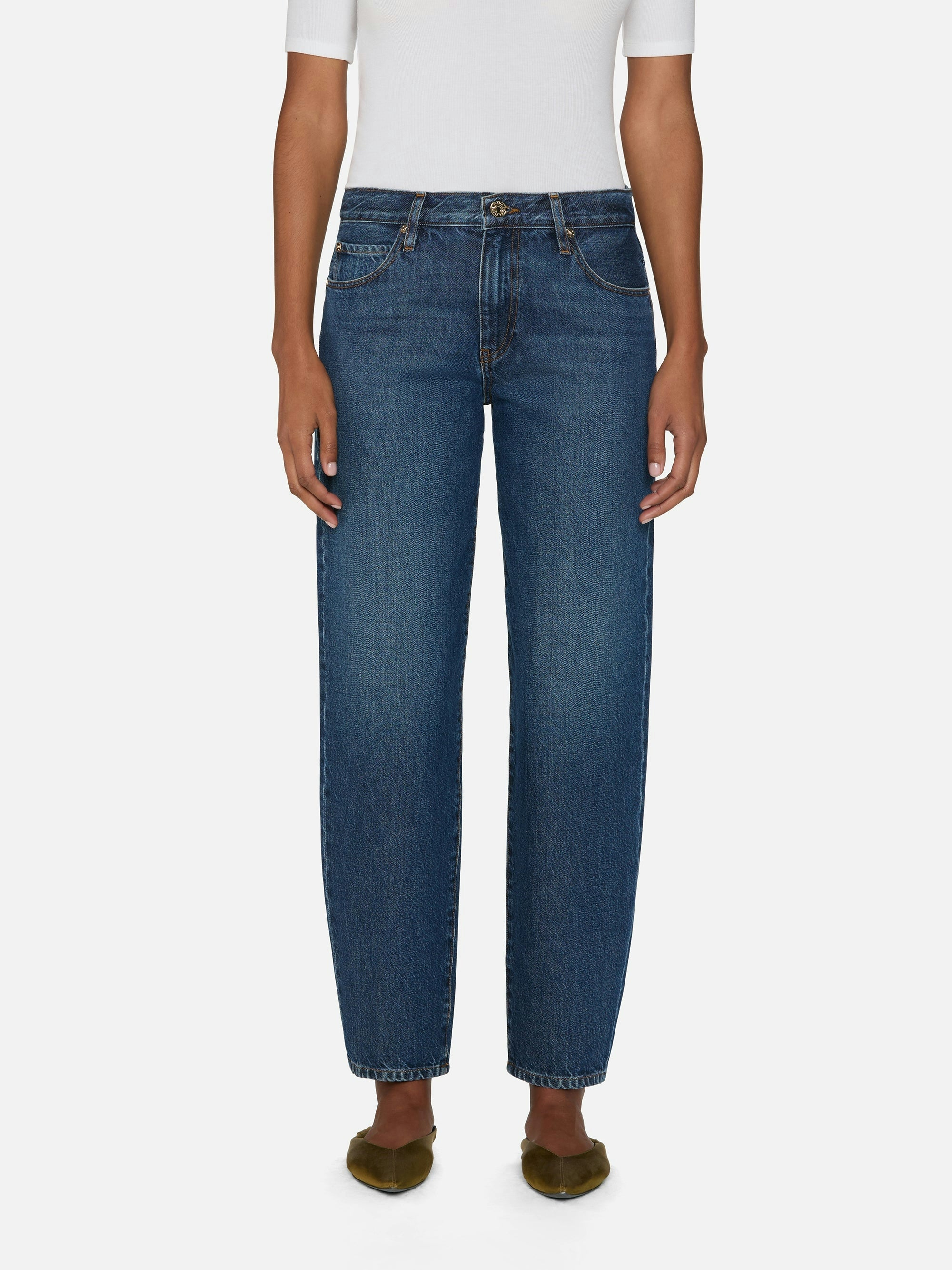 Made with sustainable cotton, these jeans have a flexible design and a mid-rise waist that flatters with a delicately curved outseam, hitting at the ankle for a polished look. True to size fit.