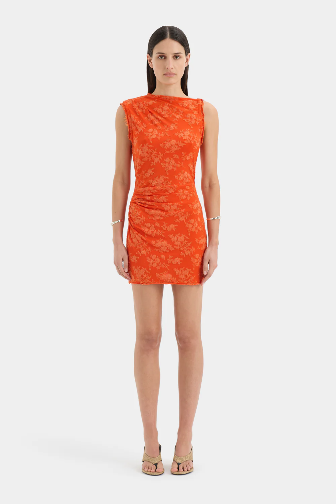 Costa Gathered Mini Dress - Tangerine Splice