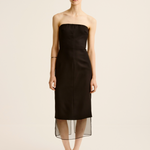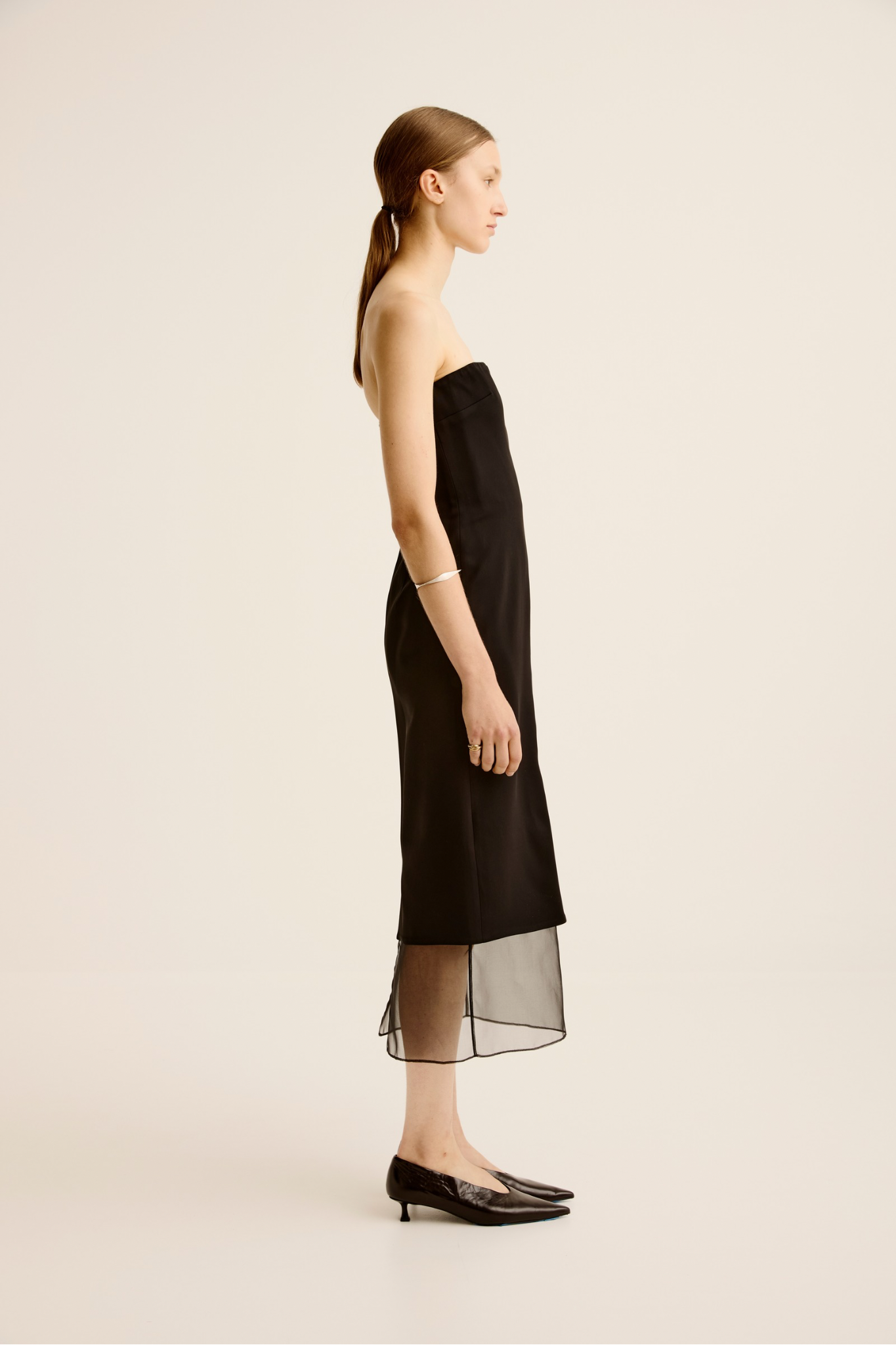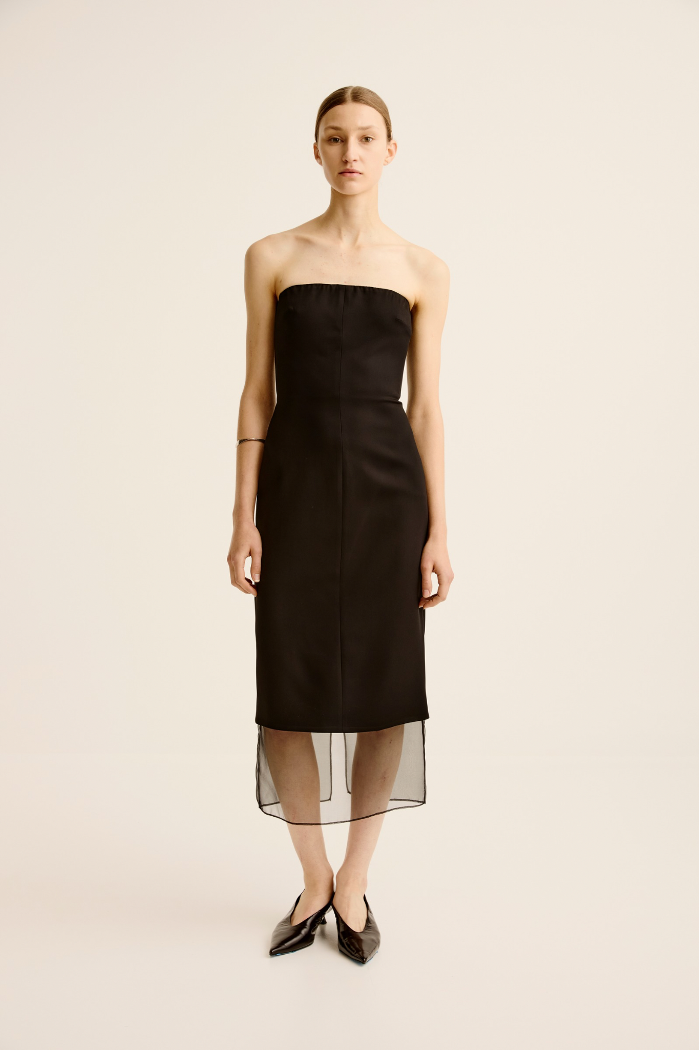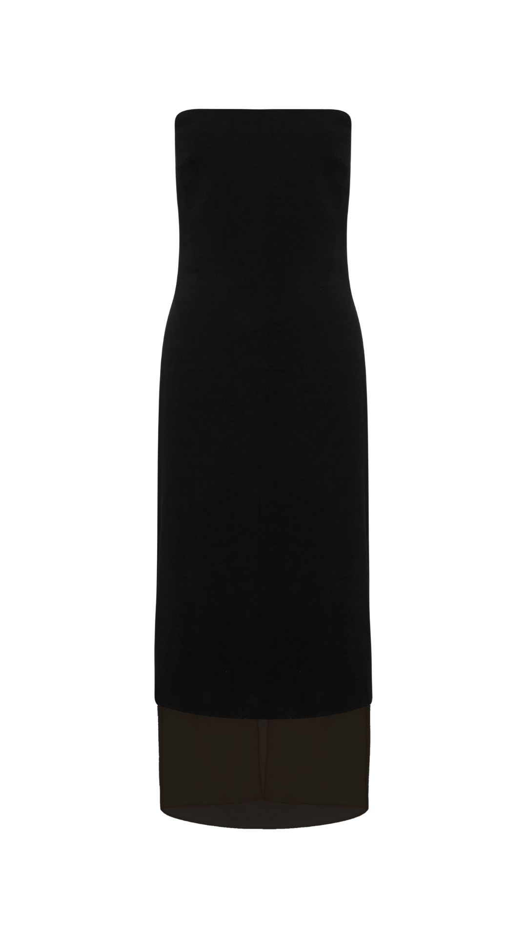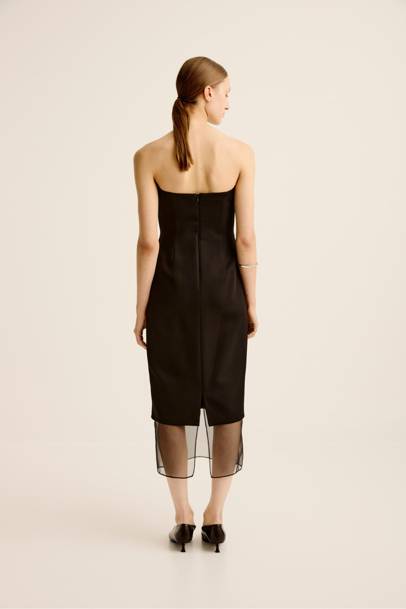 This strapless ‘Issia’ dress is made from crepe in a figure-hugging fit and traced with wispy silk-organza at the hem.