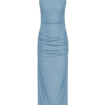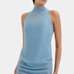 The Ruby Open Back Gown features a sleek, fitted column silhouette made from a sheer technical knit that feels soft and stretches slightly. It showcases a high neckline, subtle gathers along the body, and a striking open back detail. Pair it with the detachable slip for added coverage when desired.