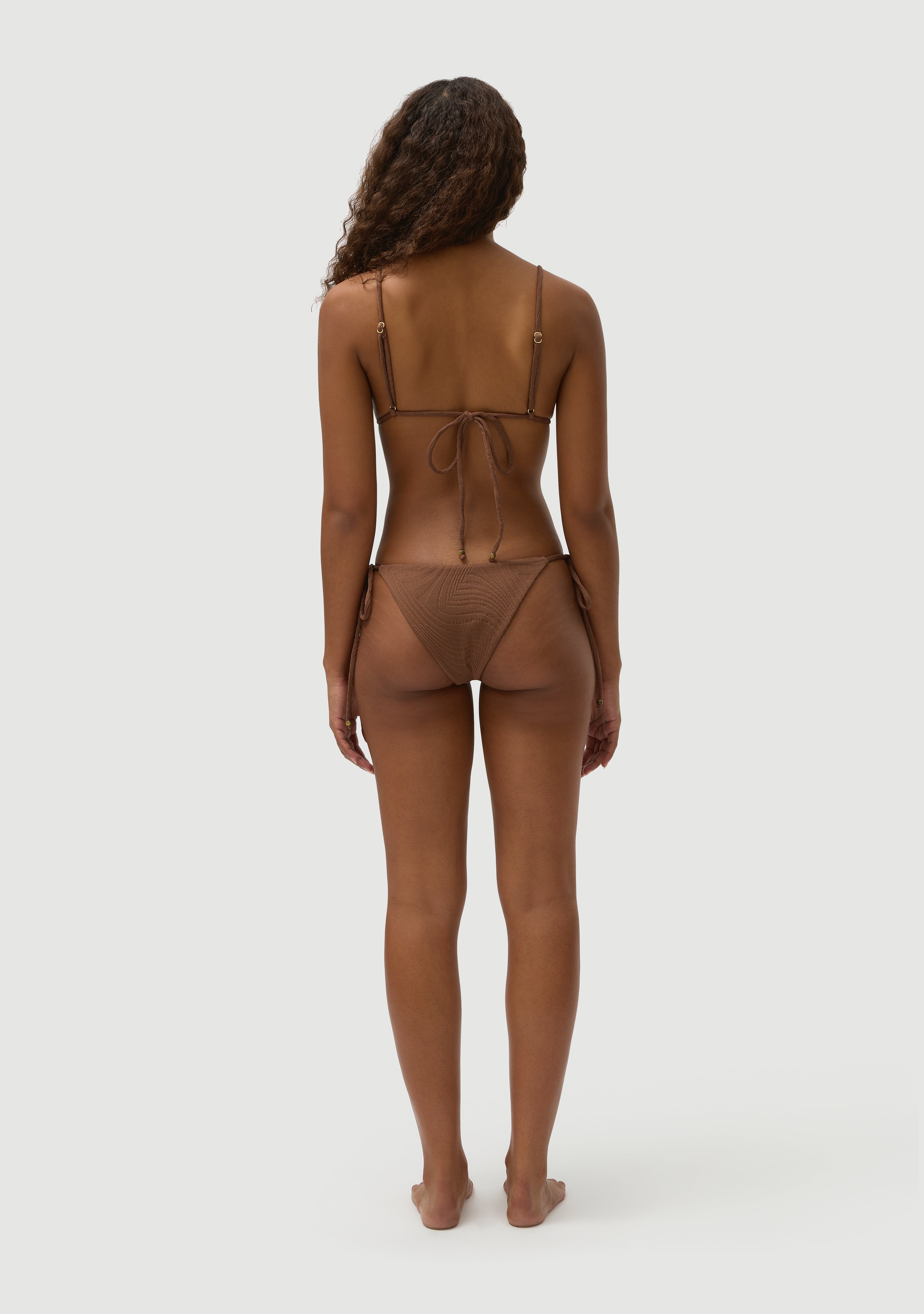 The Marcus Bottom in Pinecone is a stylish string bikini bottom featuring adjustable tie sides for a customizable fit. Designed with a mid-rise waist and a cheeky cut, it offers a flattering silhouette that enhances your natural shape. Fully lined for comfort and support, this bikini bottom is perfect for poolside lounging or beach adventures, combining both fashion and function effortlessly.
