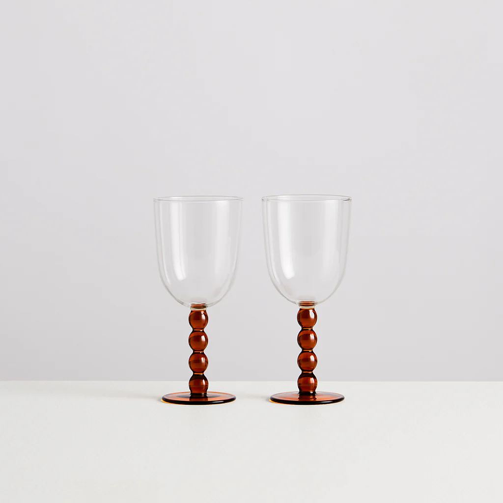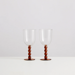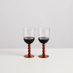 Elevate your wine experience with this sophisticated pair from the Volute collection. Each glass features a distinctive amber stem infused with a playful bubbly motif—a design element that captures the essence of imagination and dreams. Crafted from 100% borosilicate glass using traditional hand-blown techniques, these versatile vessels complement red, rosé, and white wines with equal grace. Standing 18cm tall with a 300ml capacity, they're perfectly proportioned for everyday indulgence. The Maison Balzac star logo graces the base of each piece. As handmade creations, subtle variations in tone and form are celebrated as marks of authenticity rather than imperfections.