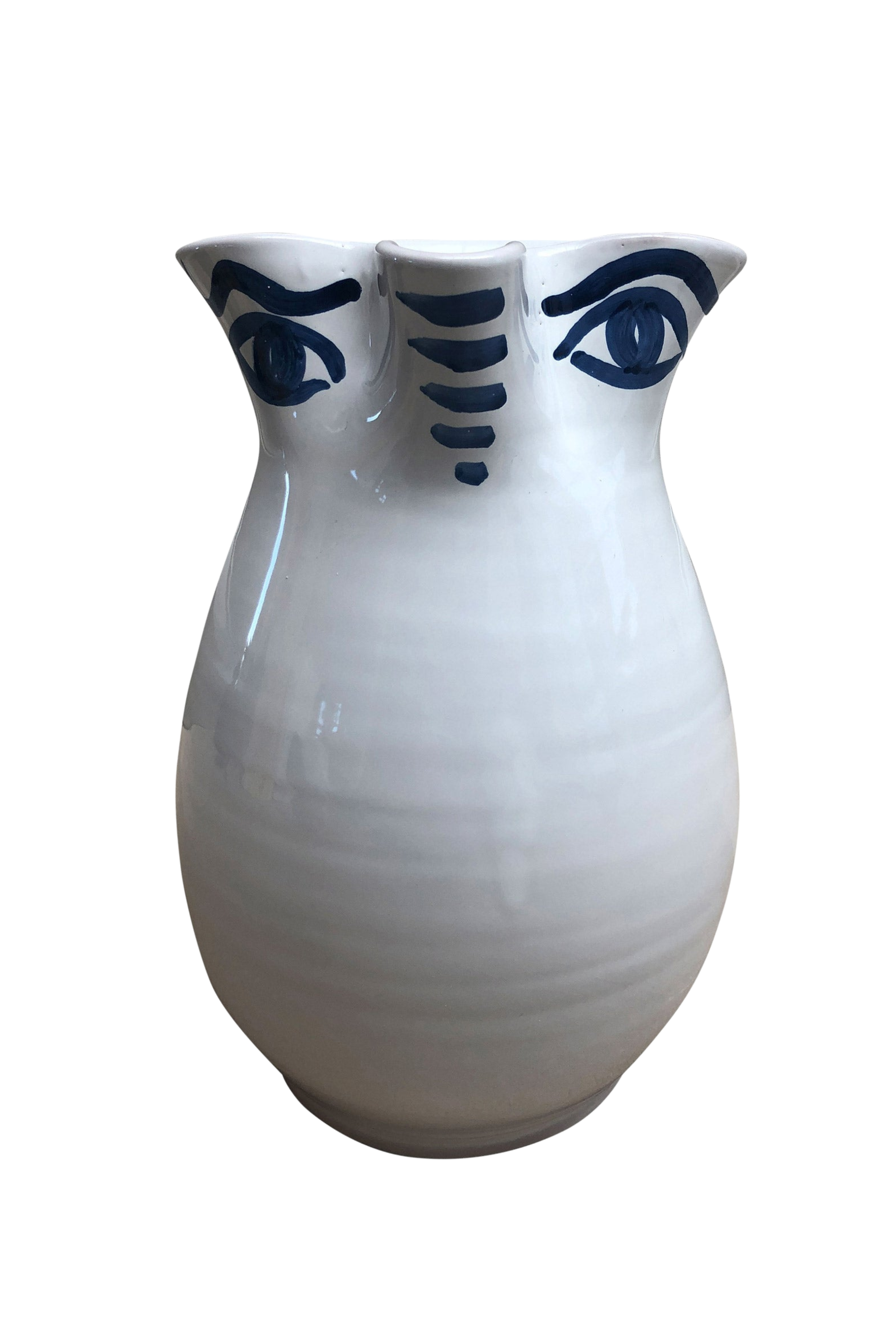 The Apulian ceramic eyes water jug is hand painted and are each one-of-a-kind. Each piece brings its own personality and talk-ability to the entertainers table with its' mediterranean palette and expressive eyes.