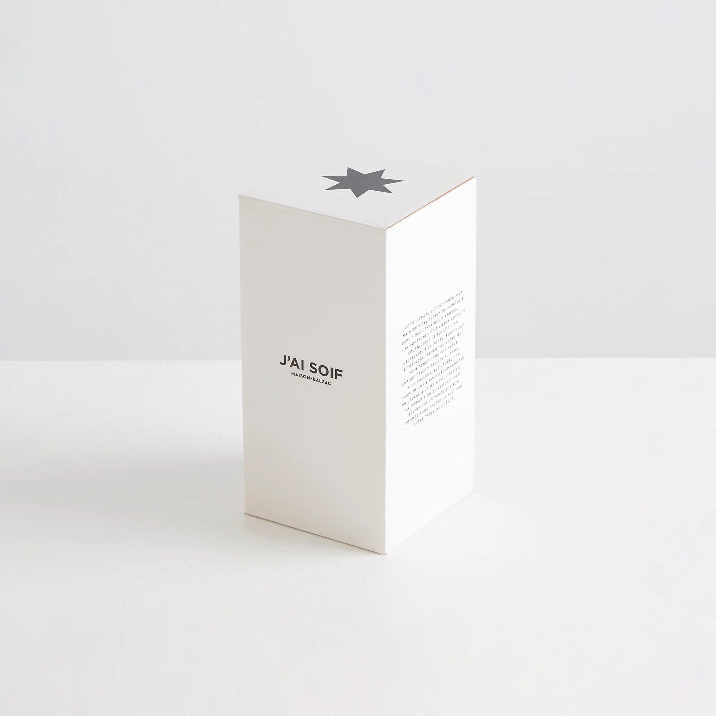 The J’ai Soif carafe and tumbler are expertly crafted from azure Borosilicate glass, inspired by the traditional drinkware sets displayed on bedside tables in France. The J’ai Soif carafes sophisticated design lines and bold colour adds extraordinary pleasure to the simple act of drinking water.