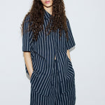 The Cotton Boxer Short in Egret Stripe by Silk Laundry.