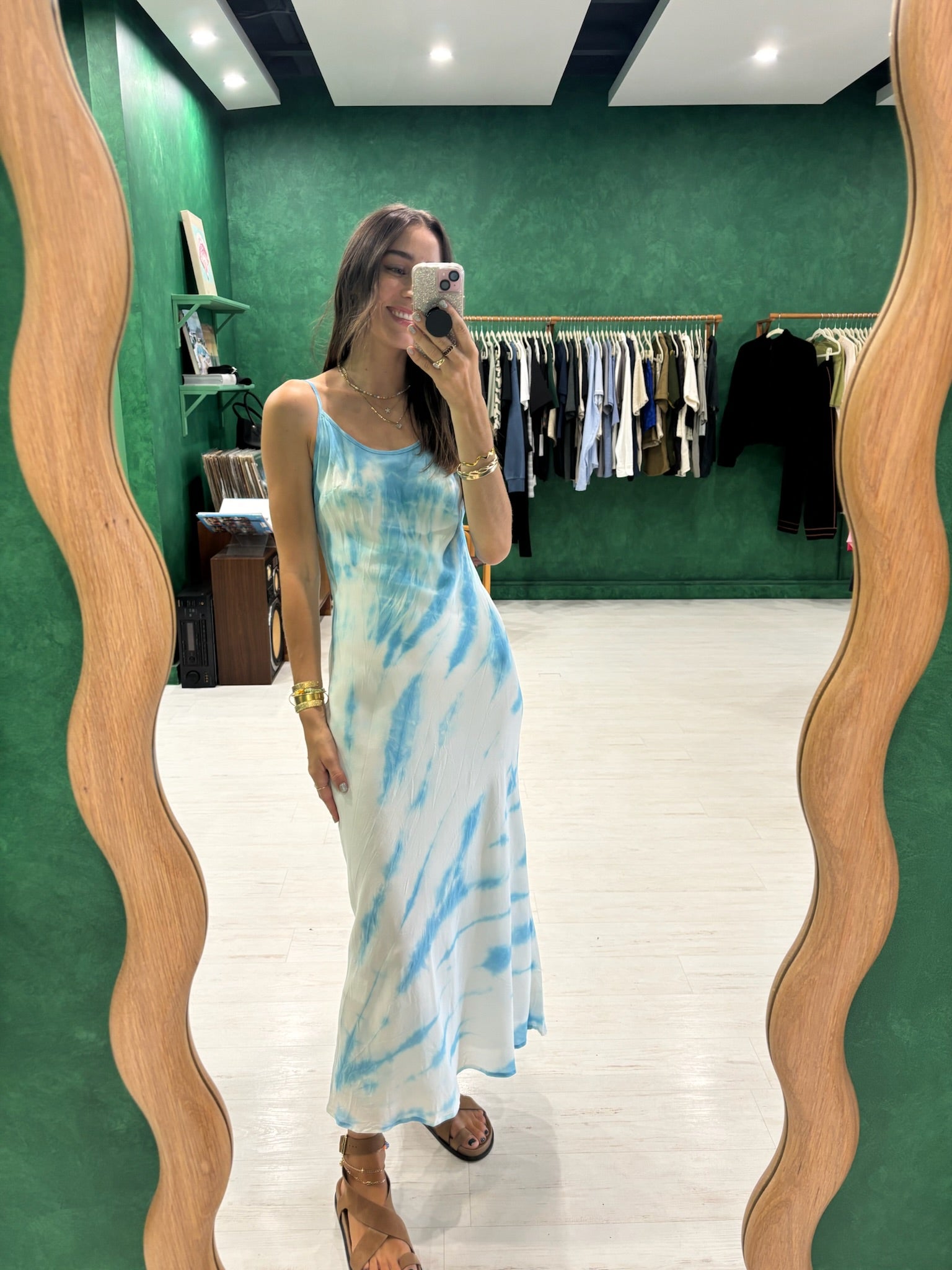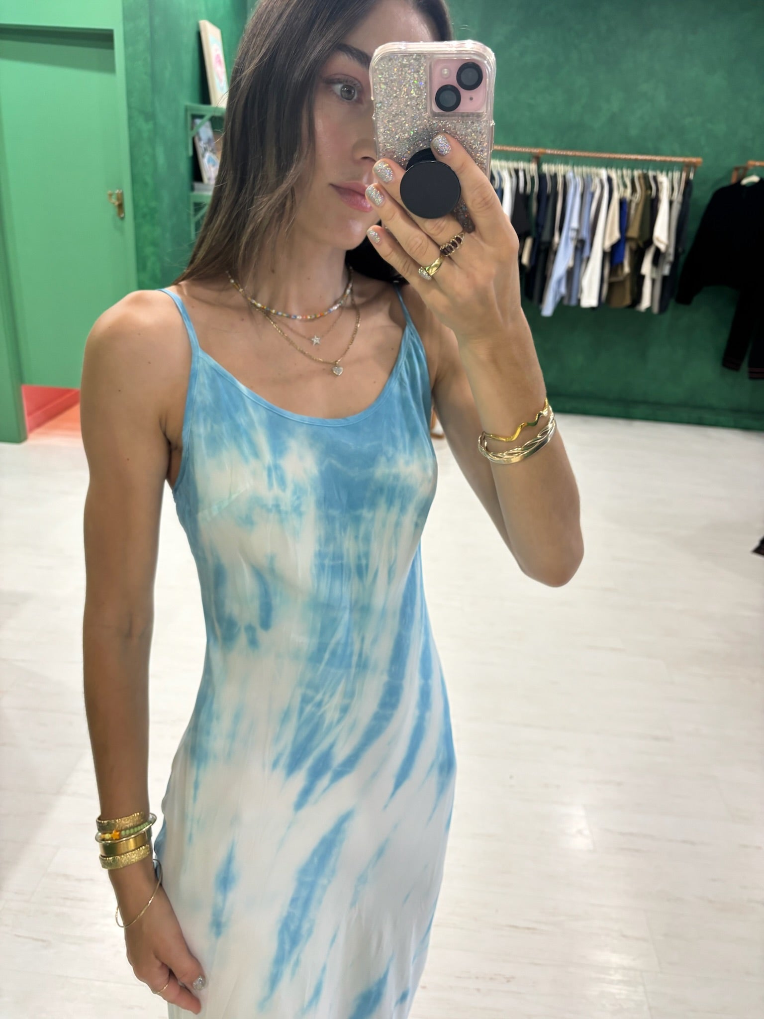 - Thing strap sleeveless silk slip dress