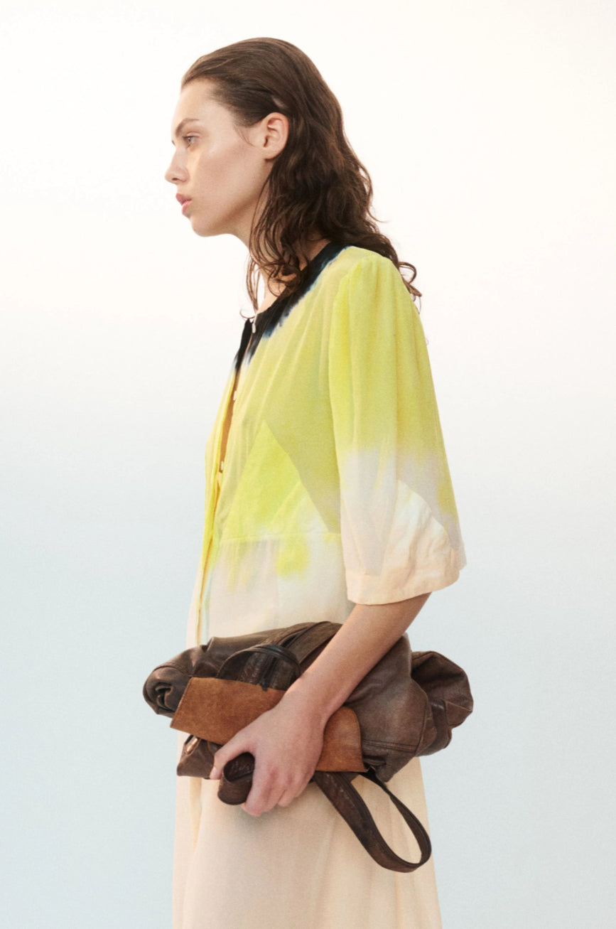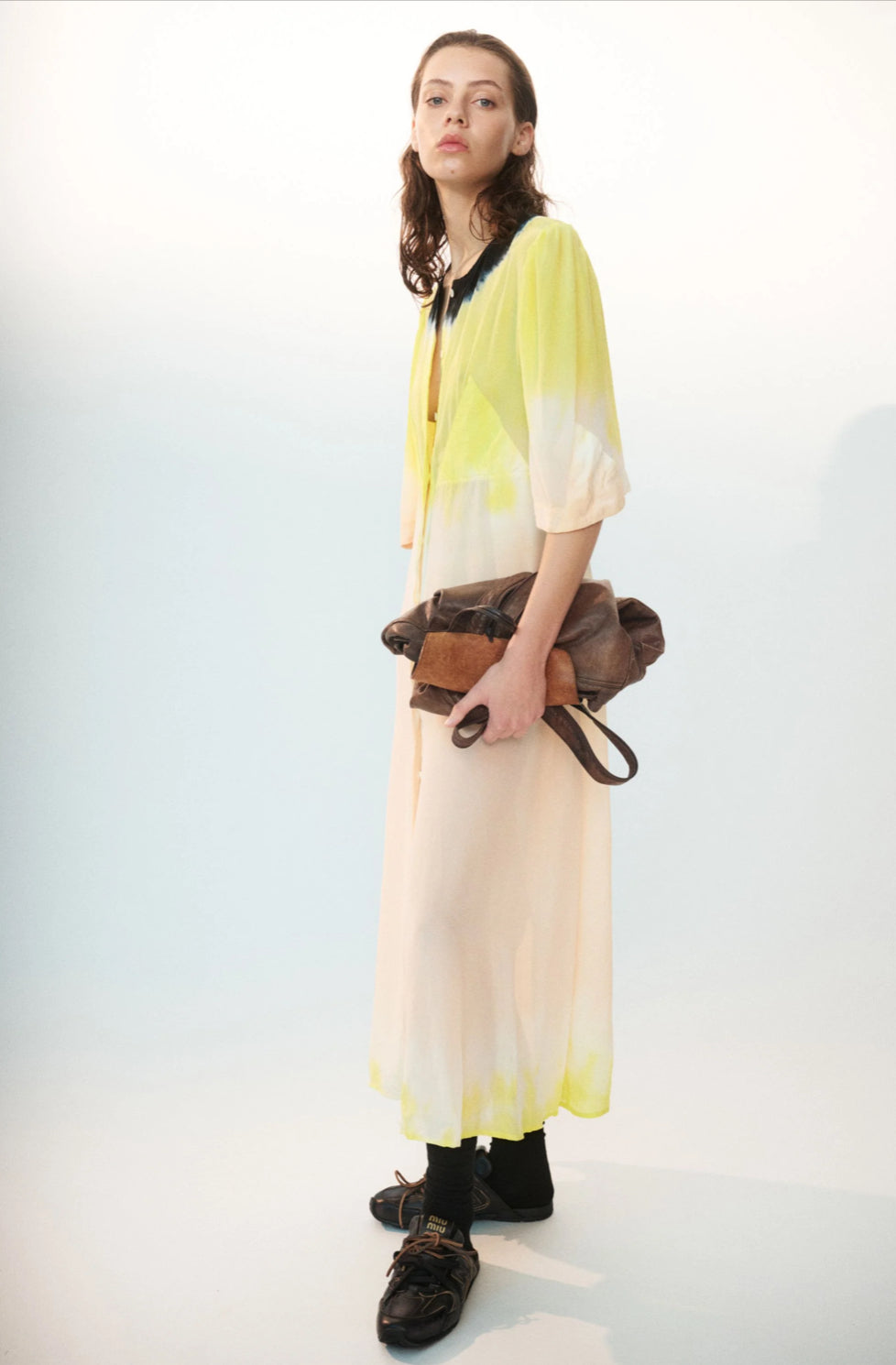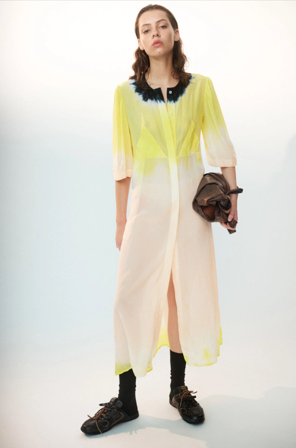 The Silk Shirt Dress in Keffir and Sand in Tulip by Luuda.