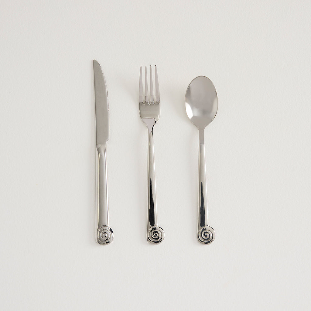 Polish off every morsel with this two-person cutlery set that is an extraordinary pleasure for the fingers to embrace. Each piece is decorated with the elegant spiral of an escargot shell, pack of 6.