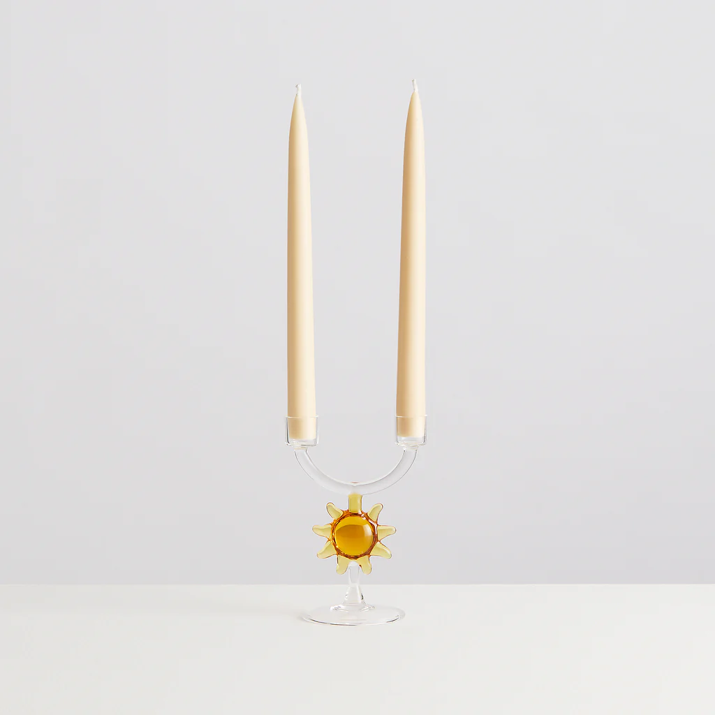 The Soleil collection is perfectly complemented by this double candle holder, designed to brighten your table and enhance the ambiance during your dining experience.