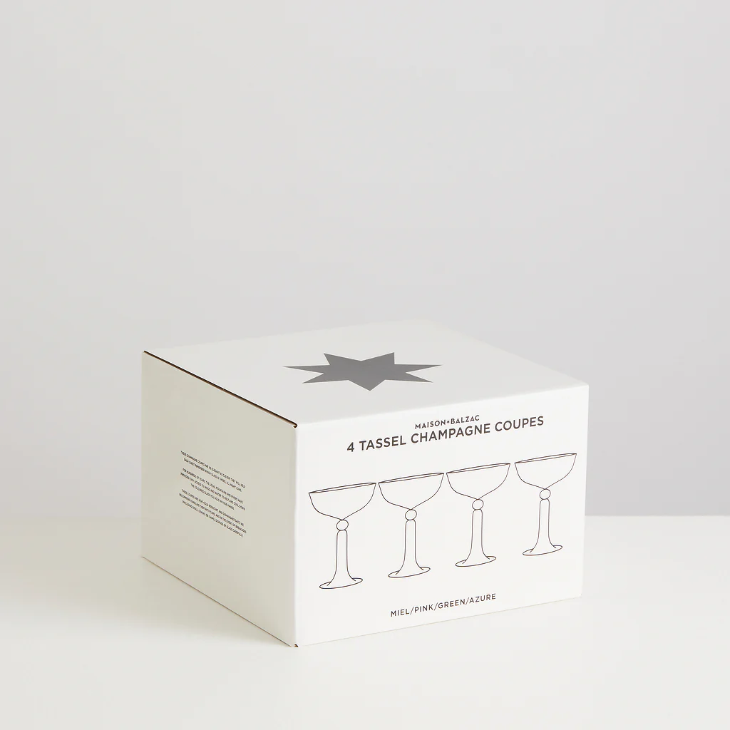 Elevate your celebrations with these stylish Tassel Champagne Coupes, designed to bring both charm and practicality to your table. Each glass features a distinctive tassel, ensuring every guest can easily identify their own coupe throughout the evening. Crafted for elegance, these coupes combine classic silhouette with a playful touch, making them perfect for weddings, parties, or intimate gatherings.