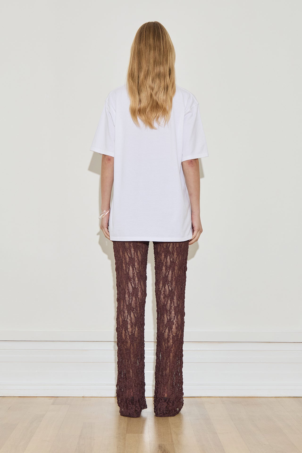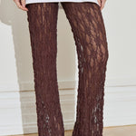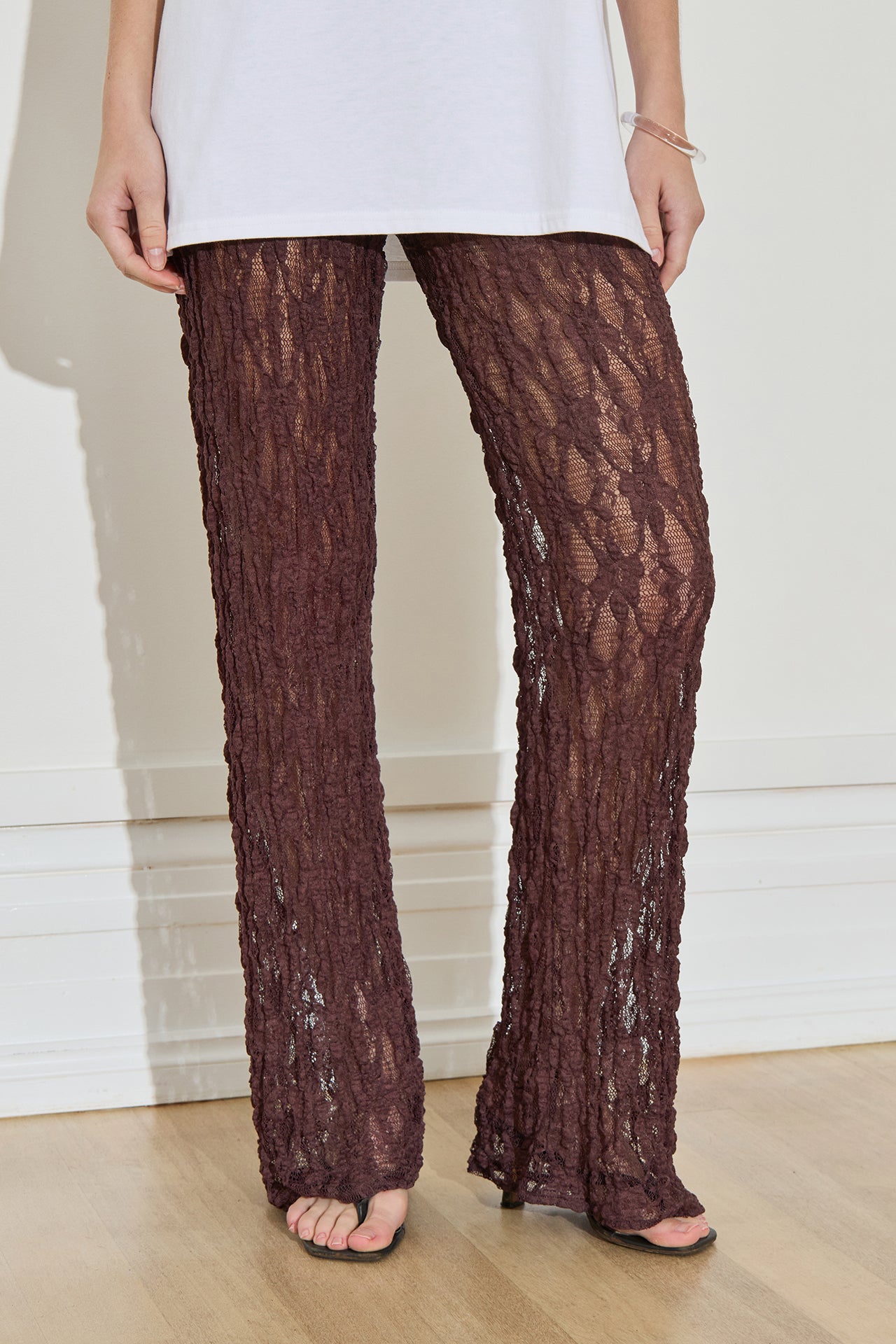 These Lace Pants are a #peggygirl favourite. Made from sheer lace and feature a straight leg cut, perfect for mid-waist wear. They have a touch of stretch for a great fit, and an elastic waistband for added comfort.