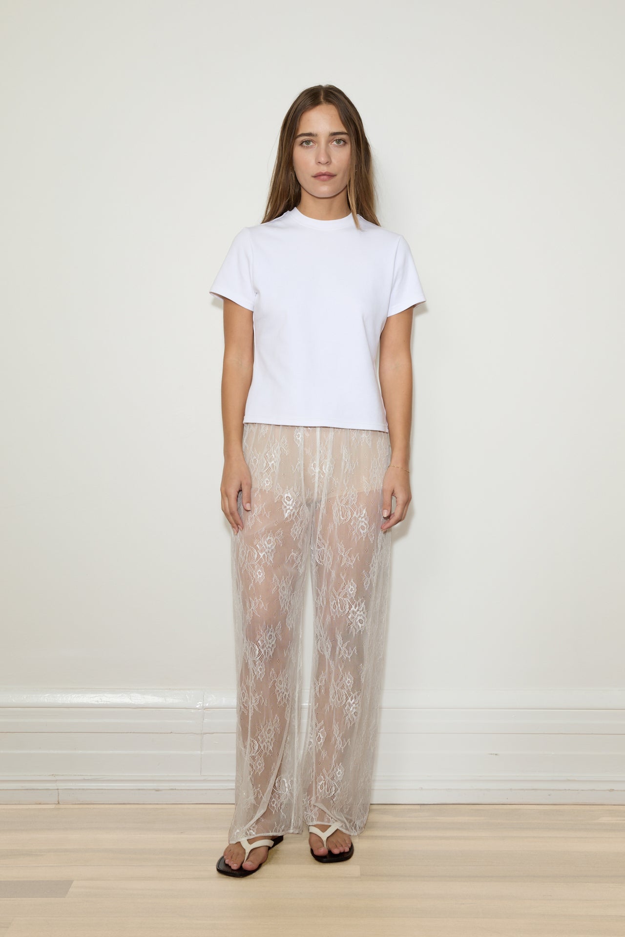 These Lace Pants are a #peggygirl favourite. Made from sheer lace and feature a straight leg cut, perfect for mid-waist wear. They have a touch of stretch for a great fit, and an elastic waistband for added comfort.