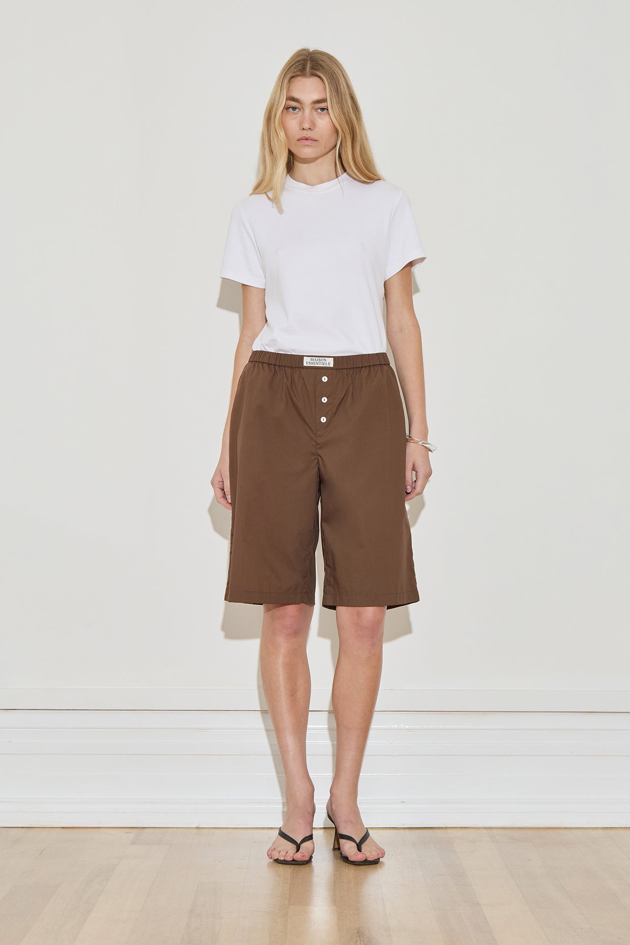 The Longline Cotton Short in Chocolate by Maison Essentiele.