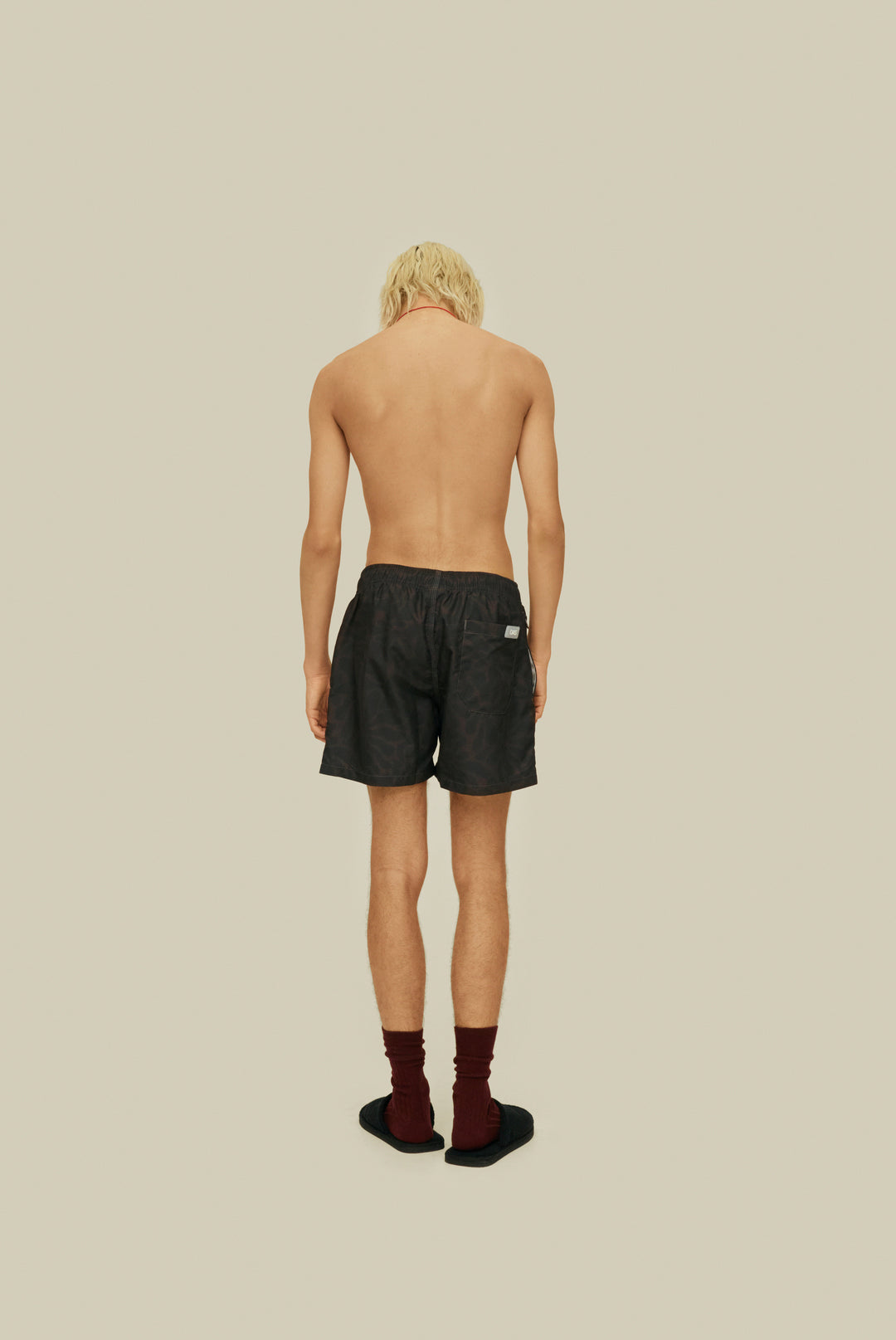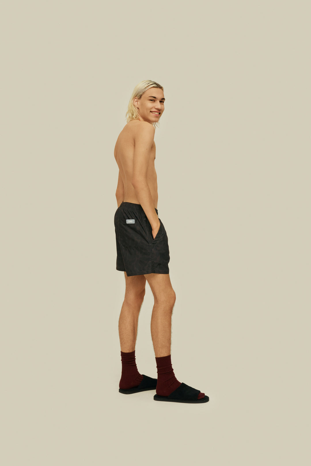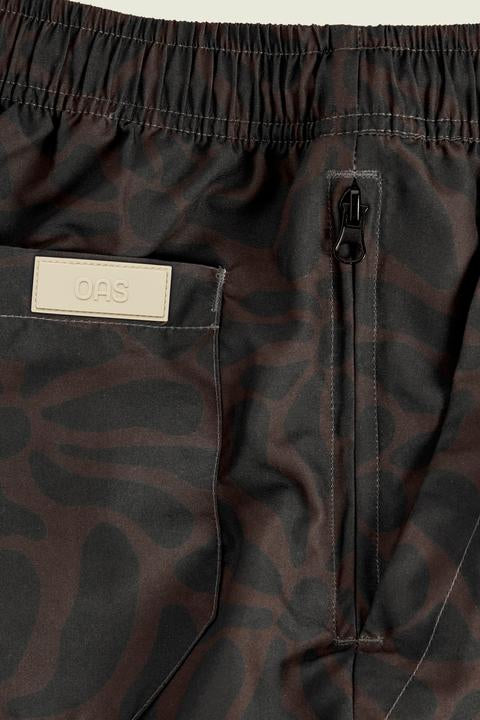The Blossom swim shorts by OAS COMPANY are tailored from a brushed, quick-drying shell fabric featuring a dark flourishing pattern. Cut for a relaxed, straight fit with an elasticized drawstring waistband and built-in mesh briefs for comfort and support. Keep your keys and cards securely stored in the hidden zip pocket.