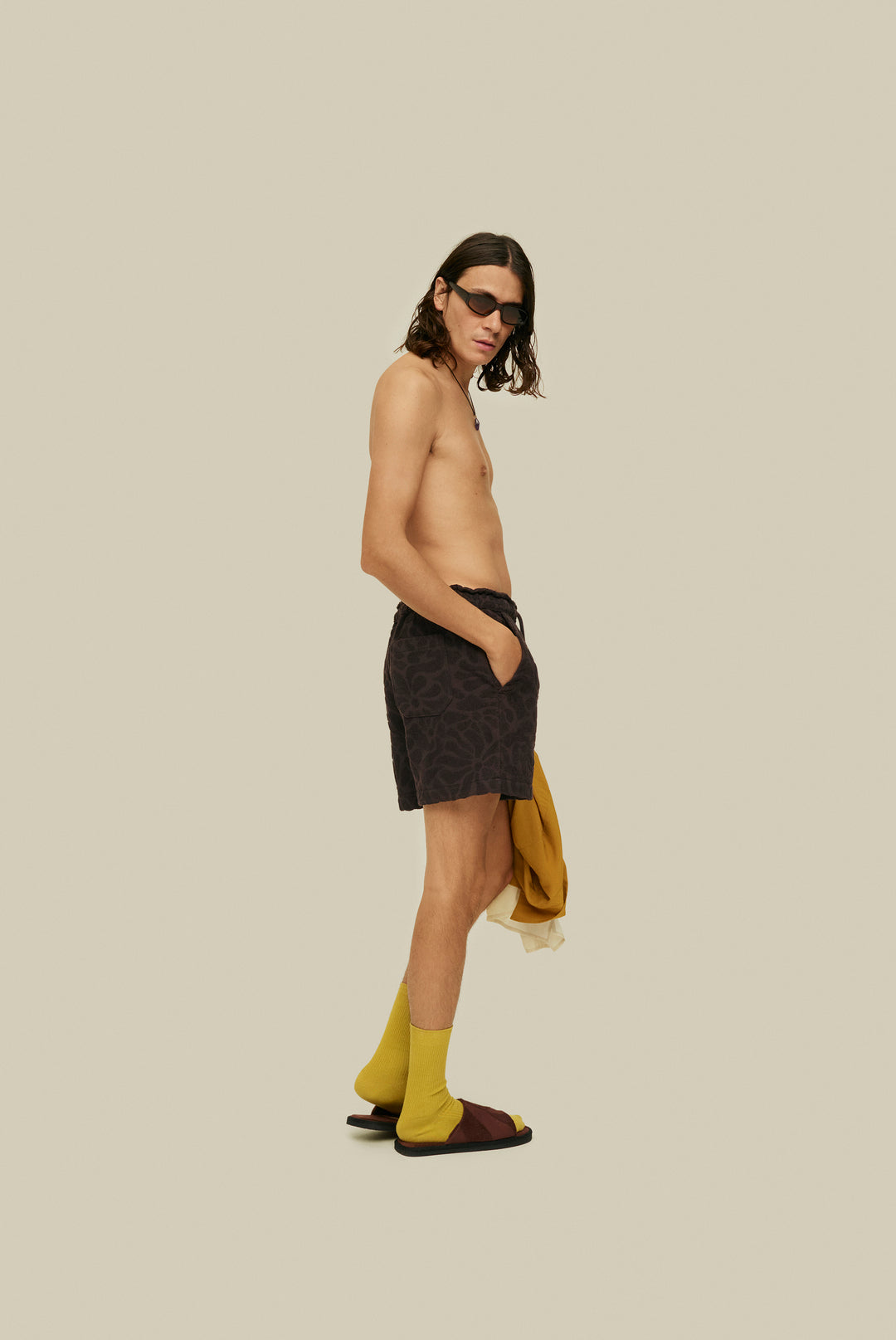 The Blossom terry shorts by OAS COMPANY are jacquard-woven with a textural flourishing pattern in heavyweight cotton terry that's sumptuously soft and breathable. Cut for a relaxed fit, these shorts come with multiple pockets and have a comfortable drawstring waistband.