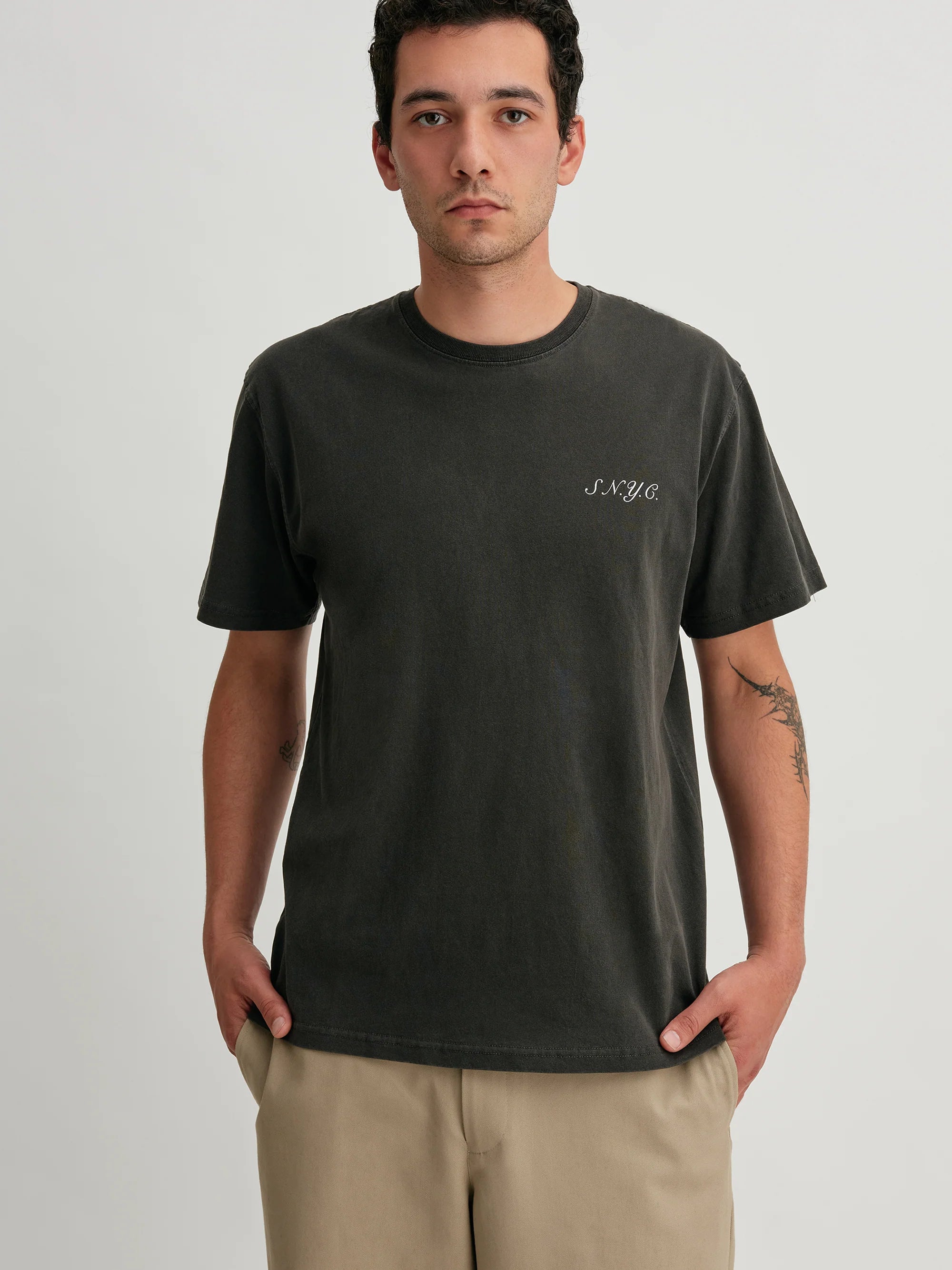 The Pigment Dyed Short Sleeve Tee in Black by Saturdays NYC is crafted from premium heavyweight cotton jersey.