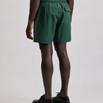 The Talley Swim Short in Green represents Saturdays NYC's essential beachwear, crafted from resilient cotton-nylon blend with stretch for comfort. Designed with a relaxed silhouette and 5" inseam, these shorts feature a practical mesh liner, secure velcro back pocket, and subtle leg embroidery for brand distinction. The perfect balance of function and contemporary style.