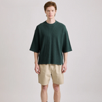 Effortlessly textured and undeniably chic, the Waffle Half Sleeve Tee combines sophisticated comfort with thoughtful design. Constructed from premium mid-weight cotton waffle fabric, this Dark Green essential offers structure and substance while maintaining an airy feel. The relaxed fit with dropped shoulder lines and elegant tonal details creates a versatile piece that transitions seamlessly from urban settings to seaside escapes.