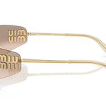 The Miu Miu 0MUA51S Sunglasses in Gold & Light Brown Mirror Bronze.