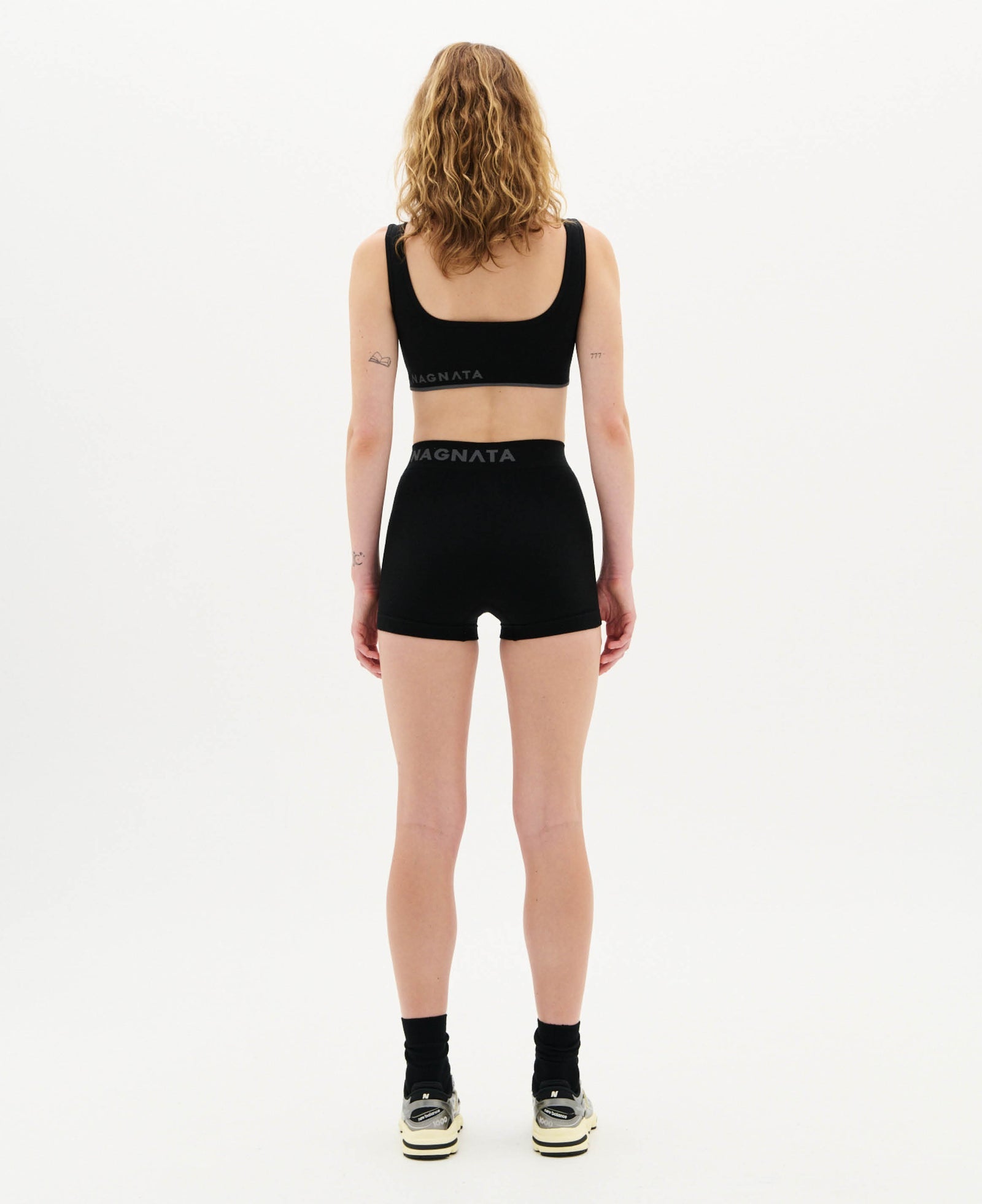 Crafted from Superfine Merino wool, the Classic Wool Bralet in Black features Nagnata's signature rib and seamless knitting technique, providing mild compression and support. The square neckline is accentuated by a contrasting jacquard stripe and Nagnata logo on the back hemband, this style is fully lined for added support and a supremely comfortable fit.