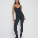 Superfine Merino wool seamless knit tri wool bodysuit with a contrast underbust design line. Offers mild compression in a single layer knit for a second-skin feel against the body. This style features a flattering deep v-neckline and is made in Nagnata's signature Core line fabrication with two-tone rib structure. Intended as an understated piece with no external branding.