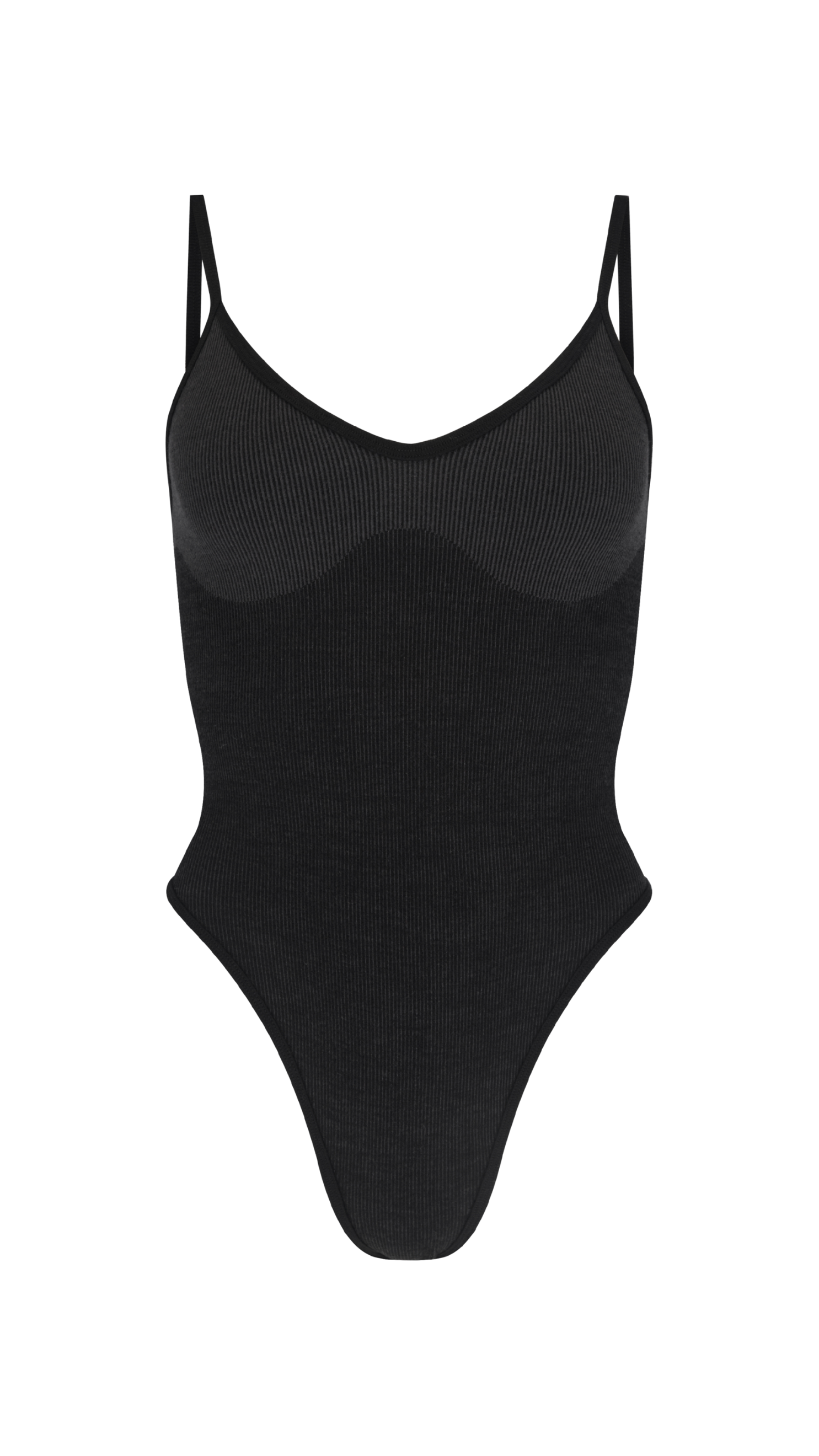 The Tri Wool Bodysuit in Obsidian by Nagnata.
