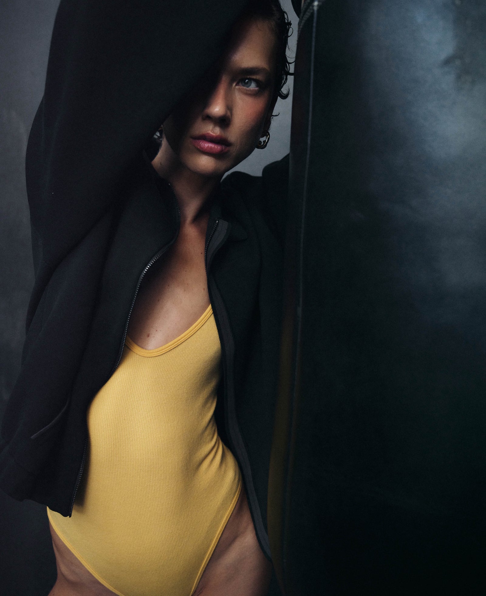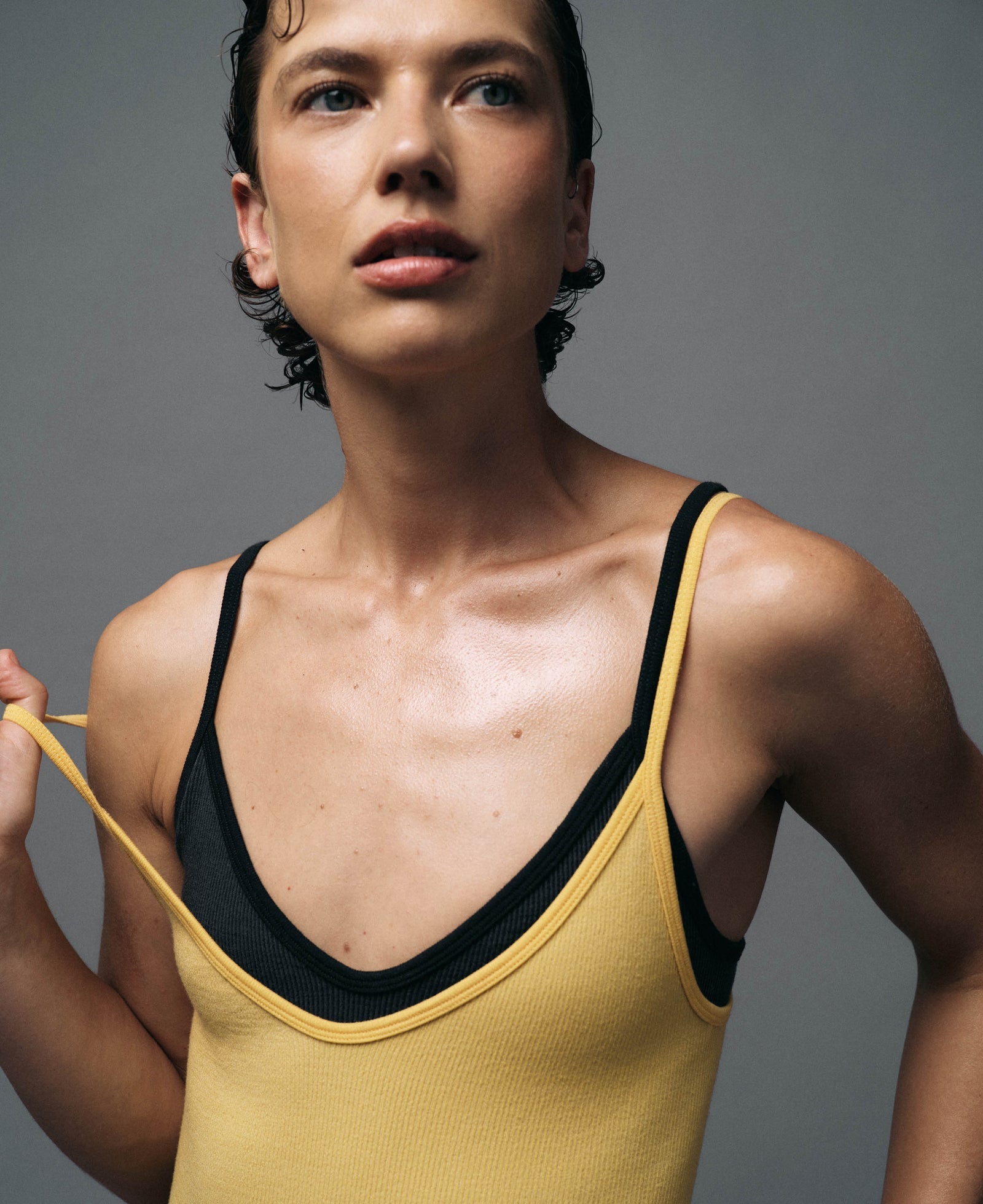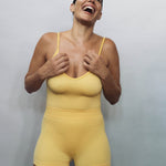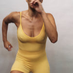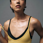 Superfine Merino wool seamless knit tri wool bodysuit with a contrast underbust design line. Offers mild compression in a single layer knit for a second-skin feel against the body. This style features a flattering deep v-neckline and is made in Nagnata's signature Core line fabrication with two-tone rib structure. Intended as an understated piece with no external branding.