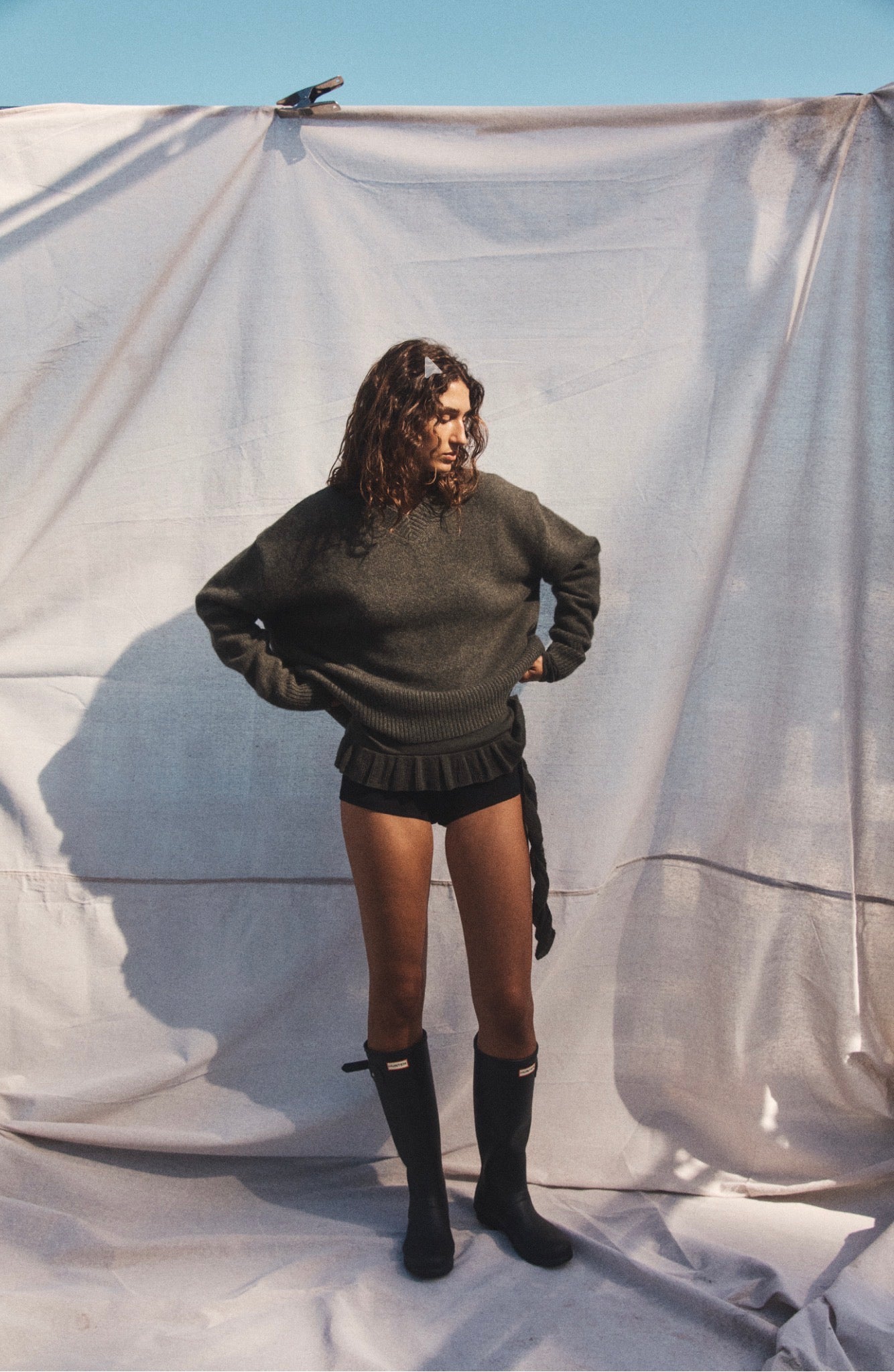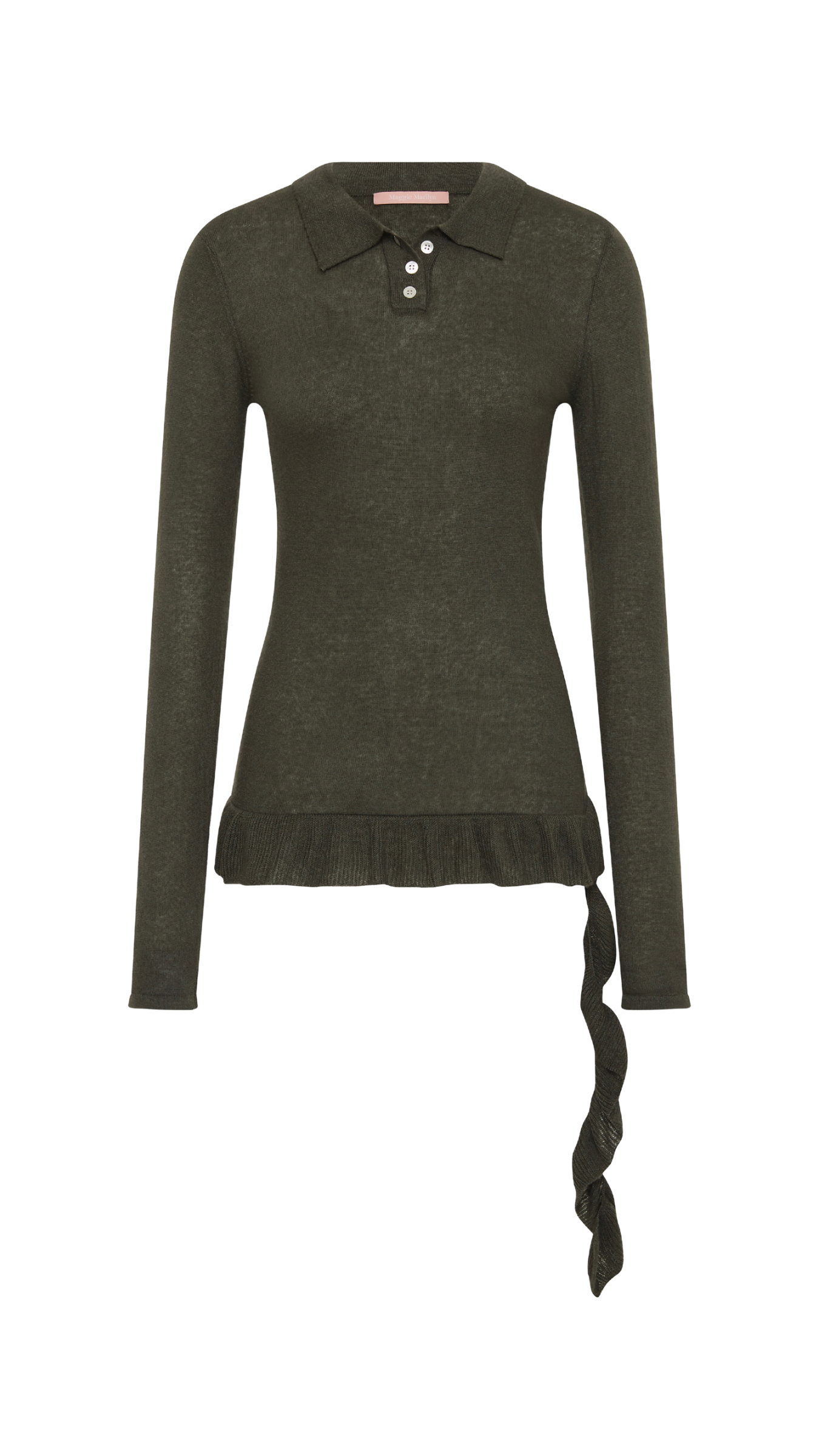 A featherlight long sleeve polo designed for a close fit with a semi-detached ruffle detailing along the hemline to peak out when layered under winter outerwear. Polished yet easy to style, it’s a modern interpretation of your cashmere staples.