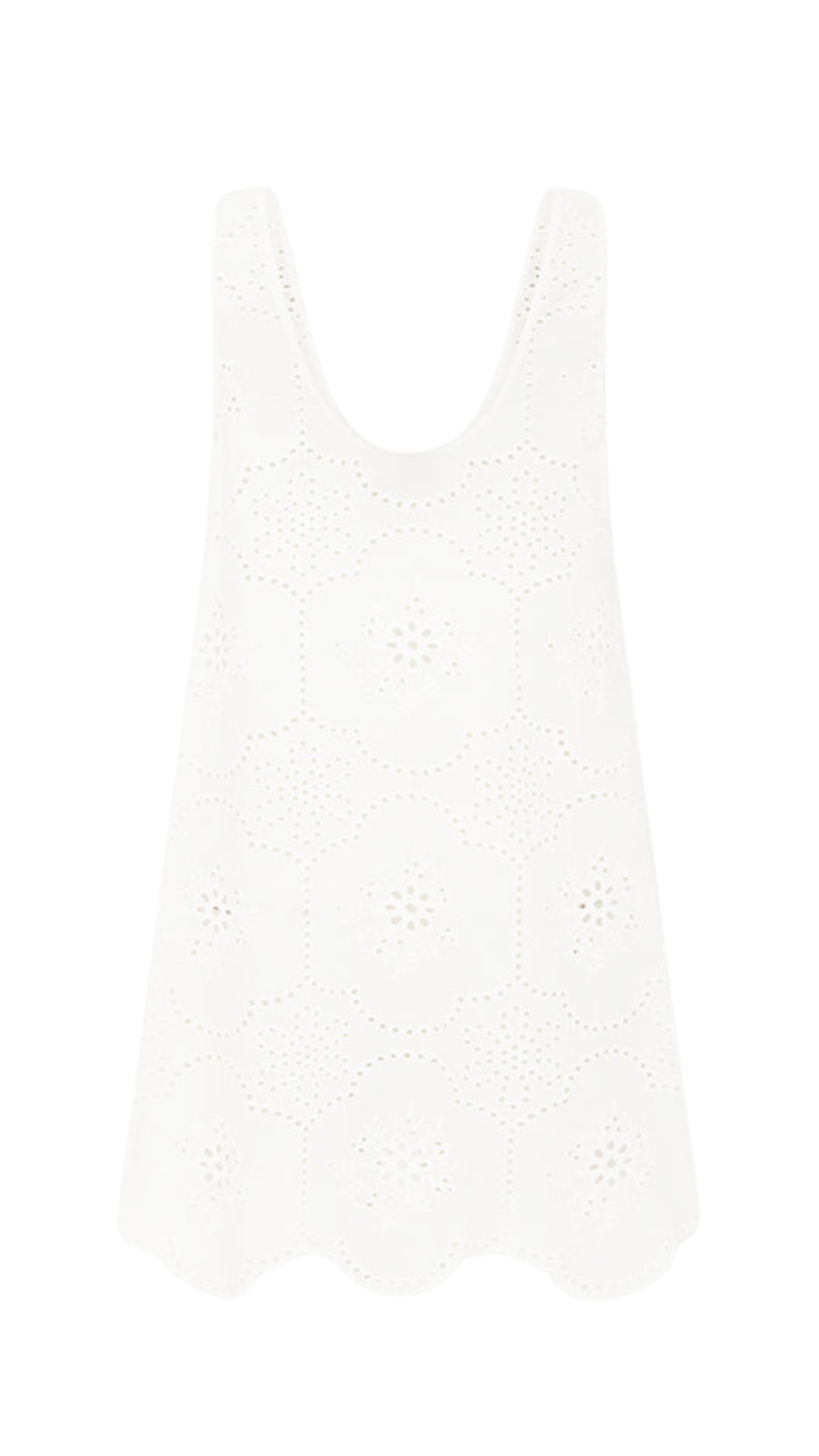 Introducing the Broderie Tank Dress in a delicate floral broderie, it's the perfect throw-on summer mini. Featuring a scalloped hem and made from our embroidered cotton, this piece is unlined with an element of sheerness through the broderie fabrication and is perfect for your next vacation.