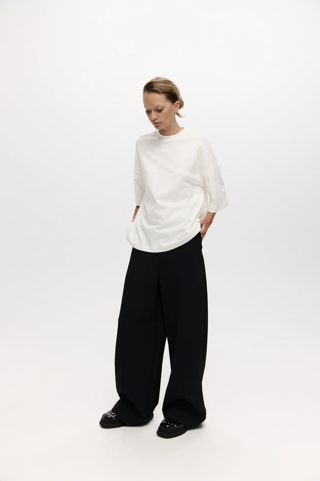 The aspirational meets the everyday. Cut in brushed cotton with a suede-like hand-feel. Drop shoulders and elbow grazing sleeves are intentionally designed for an oversized fit.