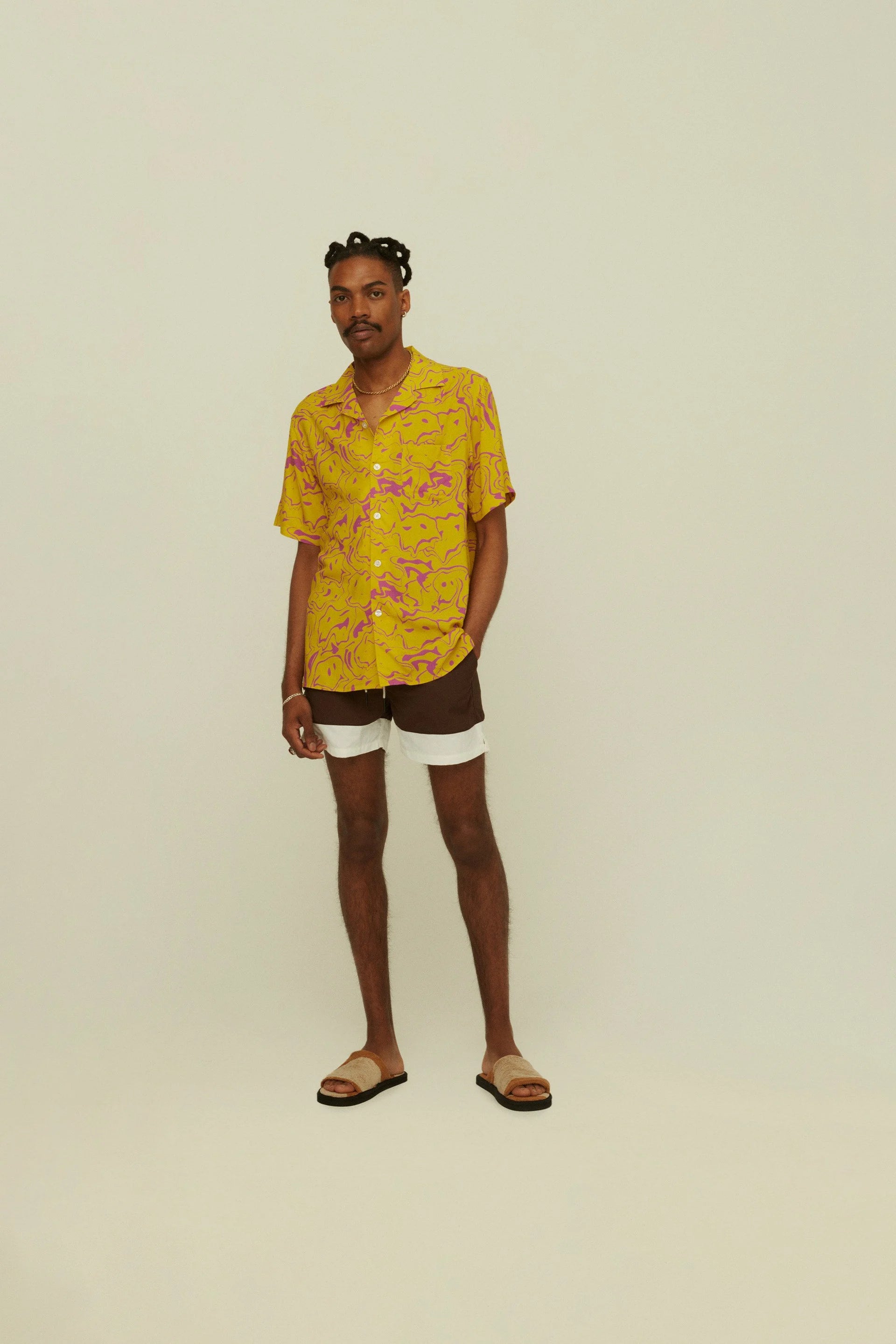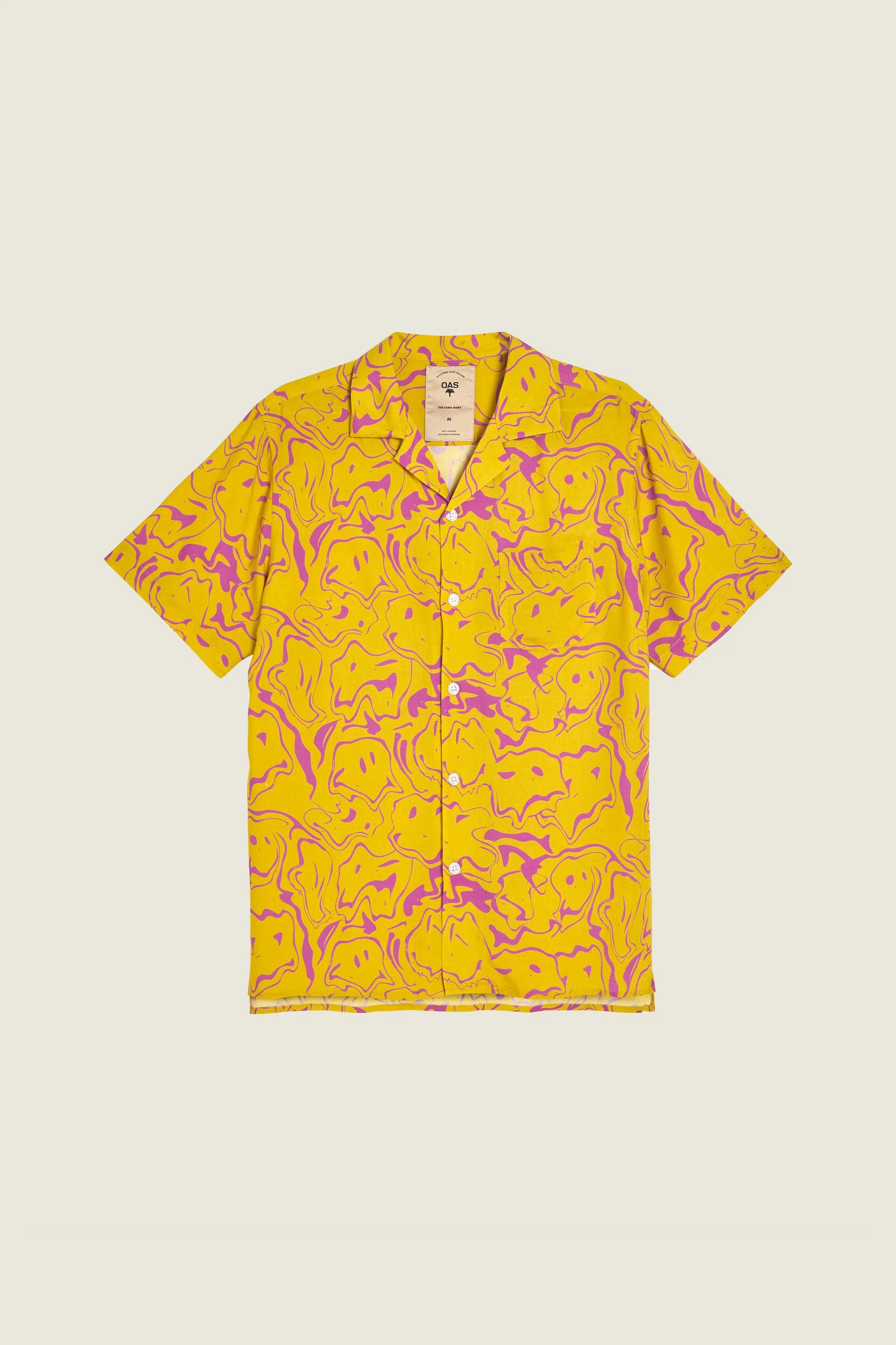 With its funky and fun pattern, the lemon yellow and electric purple Mashed viscose shirt by OAS Company is one for all sun-sational days ahead. The short-sleeved silky-soft shirt is made in 100% viscose that lets your body breathe. Constructed with a chest patch pocket and a resort collar the shirt has a relaxed and true-to-size fit.