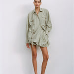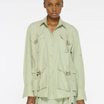The Melissa Shirt in Dune is crafted from signature Crunchy Cotton fabric. This relaxed, oversized shirt features multiple pockets and utilitarian details, while a classic collar and subtle tailoring add a refined touch. A versatile wardrobe essential.