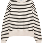 The Dean Sweatshirt is a relaxed crewneck pullover made from a midweight cotton French terry fabrication with black and white Breton stripes.