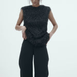 The Garbo Top in Black Tinsel Fringe by Harris Tapper.